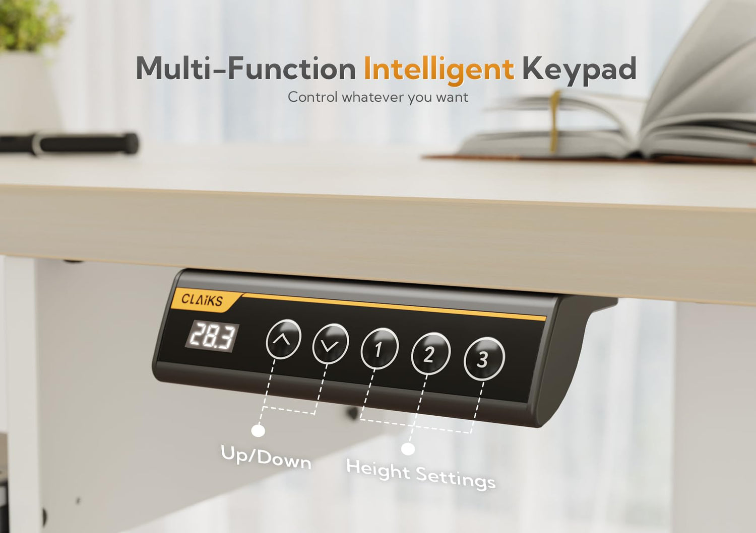 - Ultra-Quiet and Powerful Motor: Claiks custom-designed motors provide robust power for the height-adjustable standing desks. With noise levels as low as 45 decibels, you can enjoy smooth and quiet adjustments, enhancing your workspace without any disruptions