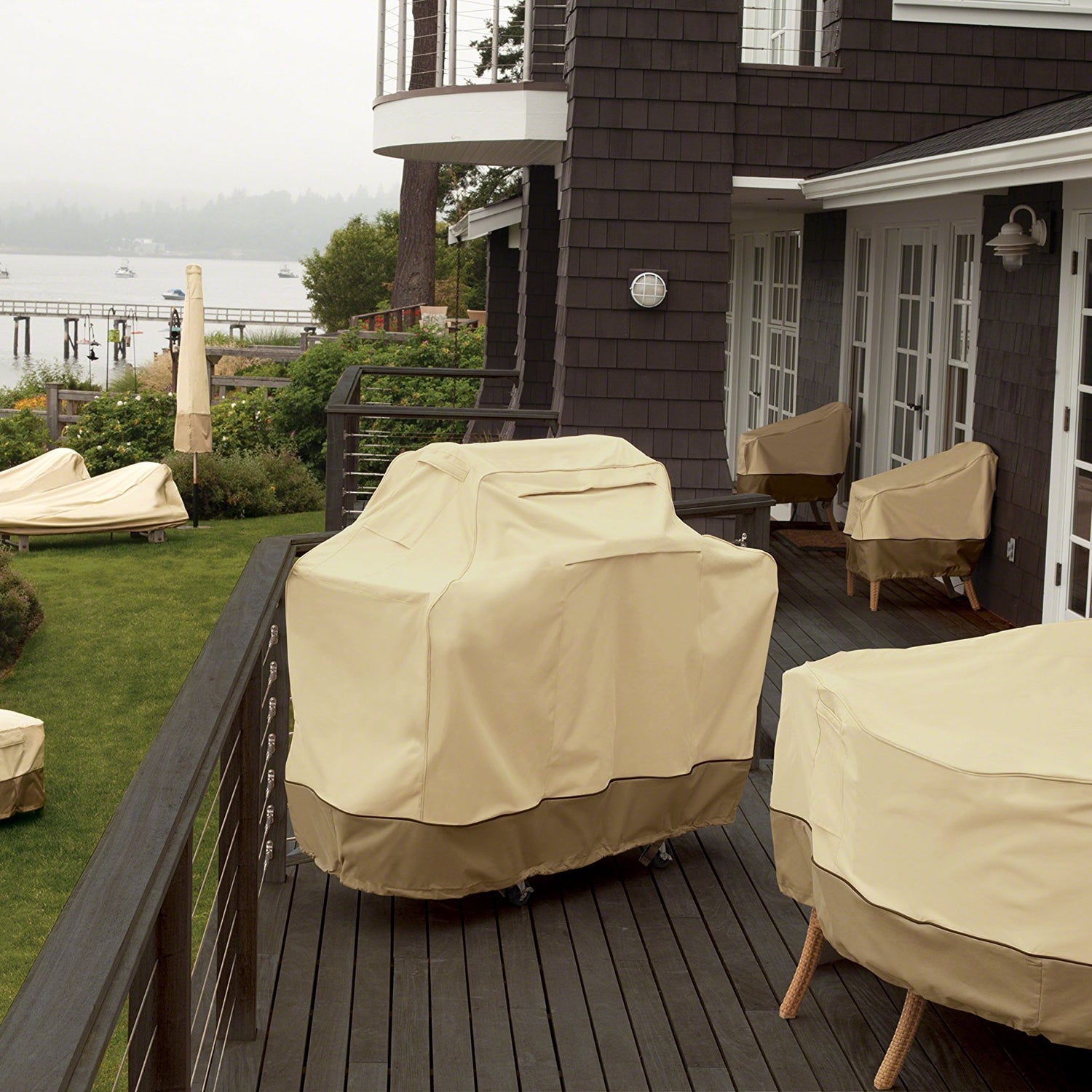 Details: A customer favorite for its fashionable design, durability and extensive collection of matching products, the Veranda line features our heavyweight Gardelle™ woven polyester fabric and special water-repellent and resistant undercoating. When you buy a Classic Accessories grill or patio furniture cover you are not just getting a cover; you're also purchasing peace of mind. Not only will your grill and patio furniture be protected from the elements, but you'll be protected with the easiest warranty in the industry. If your product fails within the warranty period, look for us online and take advantage of our warranty program supported by our US-based customer service team.