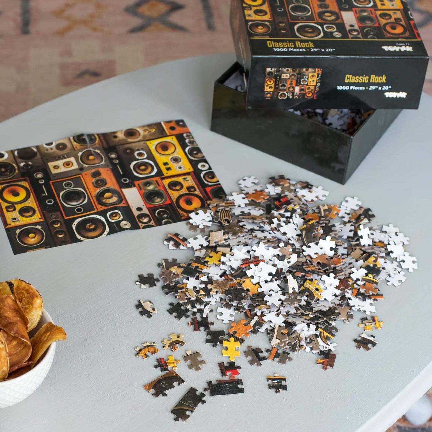 - Fun Challenge: Put your skills to the test with this colorful and entertaining 1000 piece puzzle. Complete the Classic Rock Jigsaw Puzzle solo or create a fun game night experience with family and friends.
