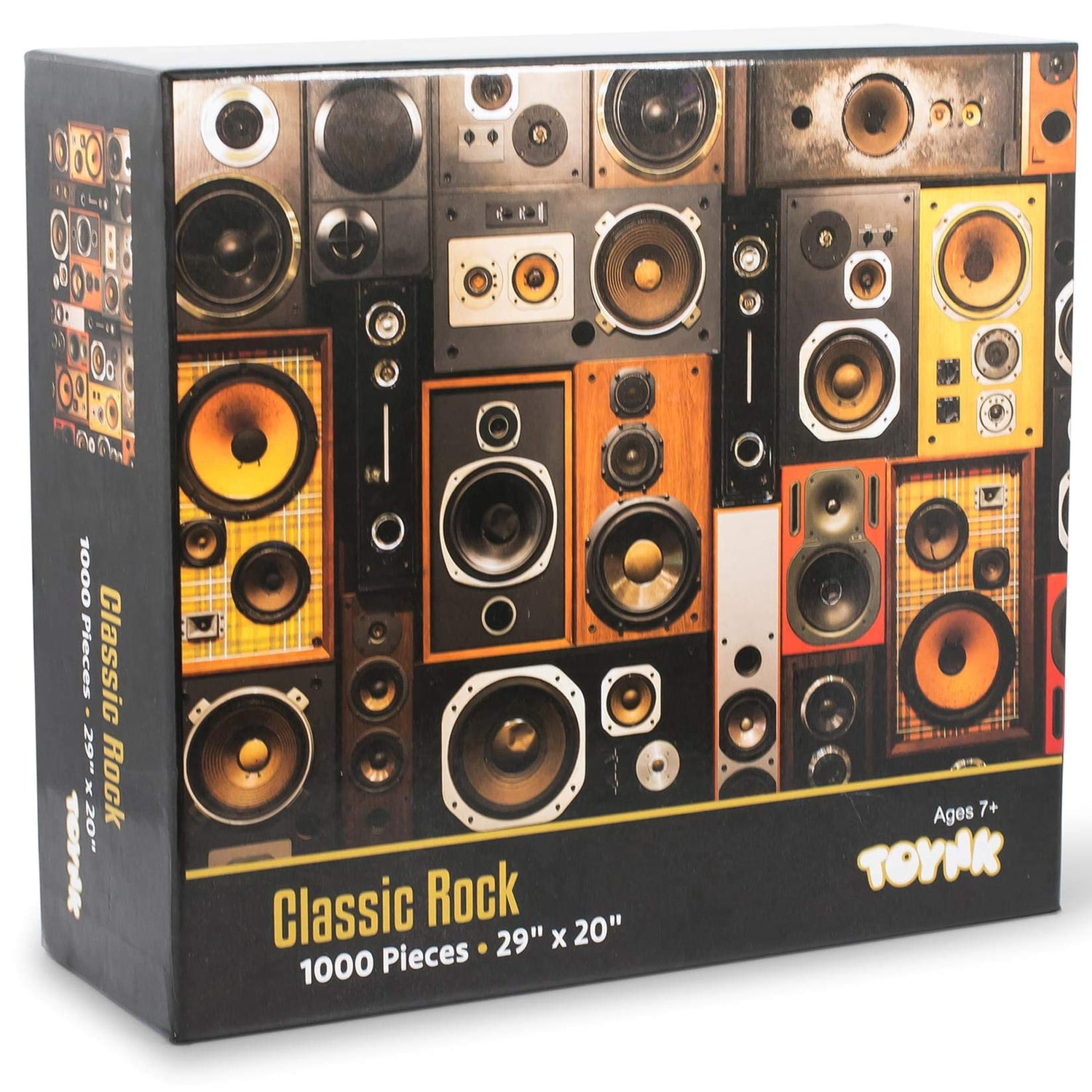 Details: THE PERFECT FIT Put your skills to the test with this entertaining Classic Rock Jigsaw Puzzle. Made of thick and sturdy recycled puzzle board, this 1000 piece puzzle is meticulously cut to ensure a tight interlocking fit. Features high-quality imagery of various surround sound systems in full-color, which is revealed piece by piece. It's a fun challenge that brings hours of entertainment. After you finish assembling the pieces, this jigsaw puzzle makes for an amazing display as a unique and crafty addition to your room decor. Enjoy a fun game night with family and friends, or make it a personal challenge and complete this Classic Rock 1000 Piece Jigsaw Puzzle solo.