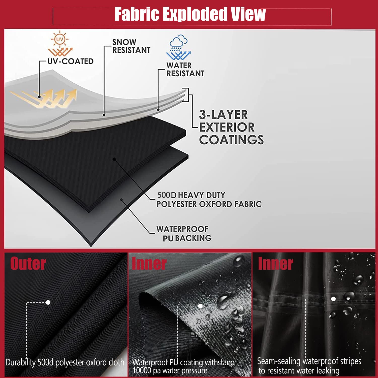 - Super Waterproof: We use the high quality waterproof polyester cloth,you can feeling the thick and the cover stitching part comes with the seal waterproof strips, all of which completely resolve the problem of water seepage of other similar products and the cover withstand up to10000 Pa water pressure to resistant storm rain