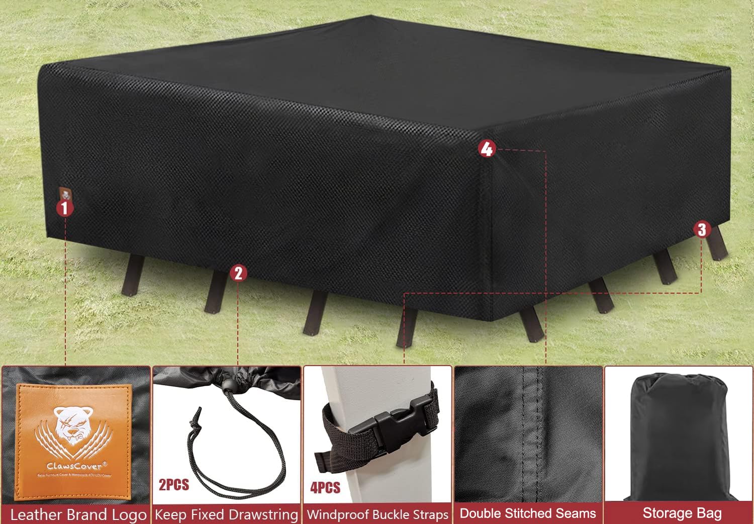 - Durable Material and All Weather Protection: ClawsCover outdoor furniture set cover made of durability 420D polyester cloth with PU coating ,Better than 190T 210D 300D oxford cloth,it's waterproof windproof all weather use,uv protection,anti-fading,anti-aging,rip-off,dust proof,snow proof.great for all season and all weather use