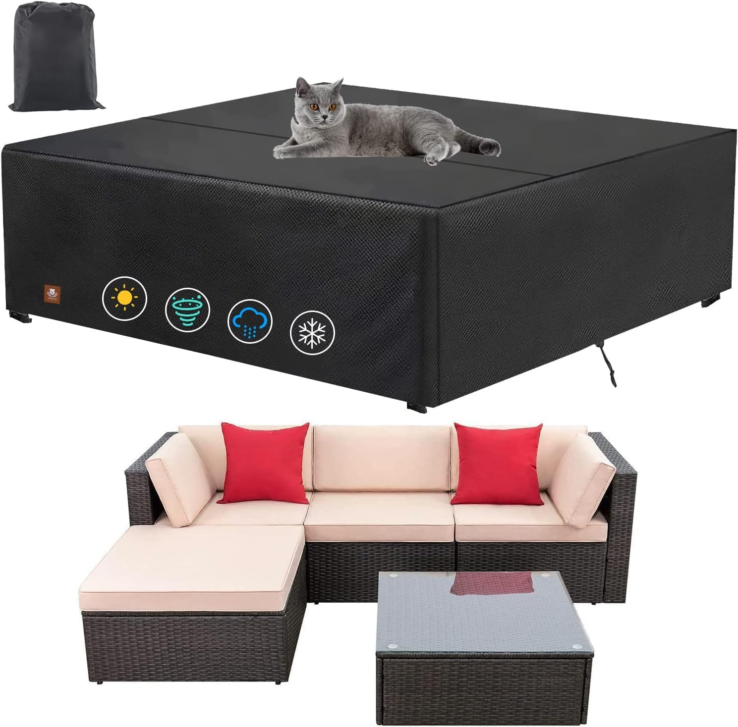 ClawsCover 5-6 Pieces Patio Furniture Sets Covers Waterproof,4 Seater Wicker Rattan Outdoor Sectional Couch Sofa Cover,Fadeless Tearproof Patio Table Set Cover,Rectangle,85Lx59Wx25H Inch