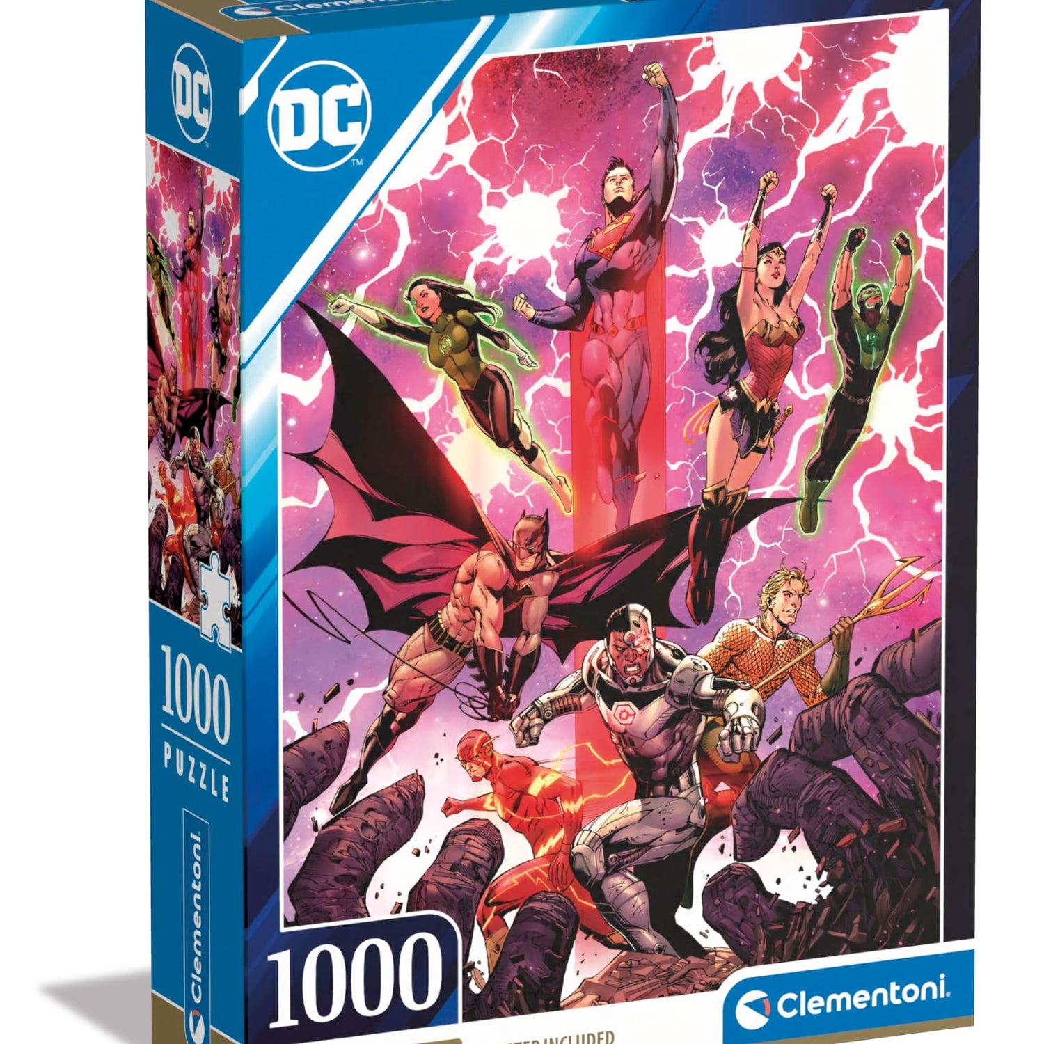 Clementoni - DC Comics Justice League League-1000 Pieces, Vertical, Fun for Adults, Superhero Puzzle, Made in Italy, Multicoloured, 39853