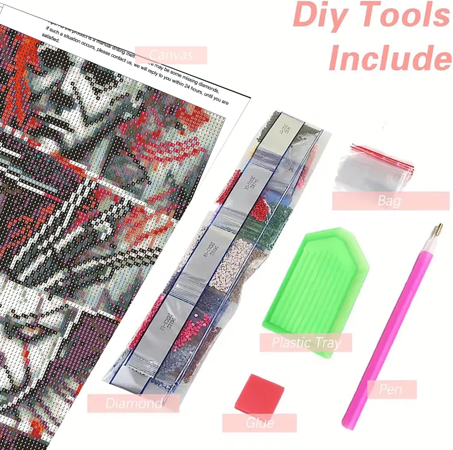 - 【5D Diamond Painting Kits】 - The package Include:1 x horror Diamond Painting 1 x Diamond Drawing Tool(Mud, Pen, Speed up plate, diamonds bags)(Exclude Frame).