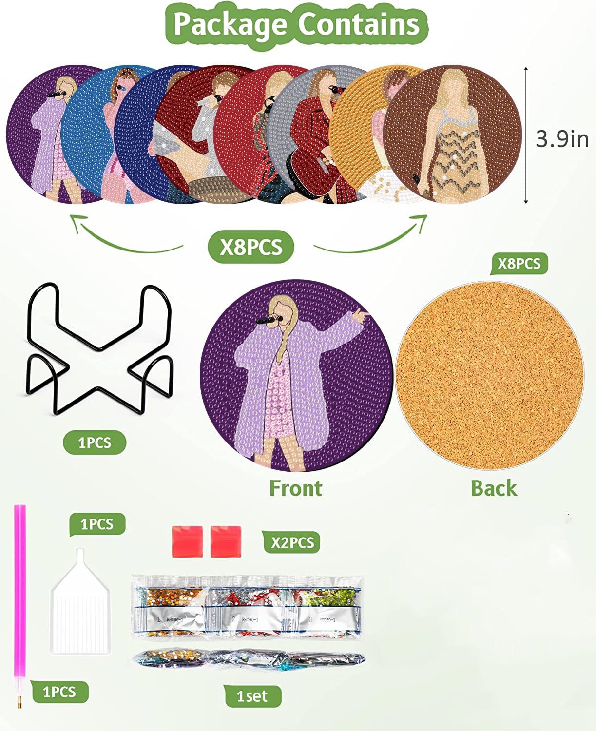 Clendo Pop Star Diamond Painting Coasters Kits for Adults, 8PCS Pop Diamond Art Coaster Kits with Holder, Small Diamond Painting Kits for Adults & Kids Art Craft Supplies, Bdwy041