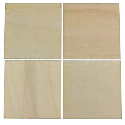 Details: CleverDelights 3 inch wood squares. 10 pack. These blank unfinished wooden squares are great for DIY crafts, creative decorations, special events, and ornaments. Both sides are smooth and can be embellished with pencil, pen, markers, or paint. Thickness: 3/32 inch. Natural unfinished wood color cutouts. We offer wood square shapes ranging in size from 1" to 4". Circle, star, hexagon, and gift tag shapes also available. Please visit our store to see our full selection of wood tags and shapes.
