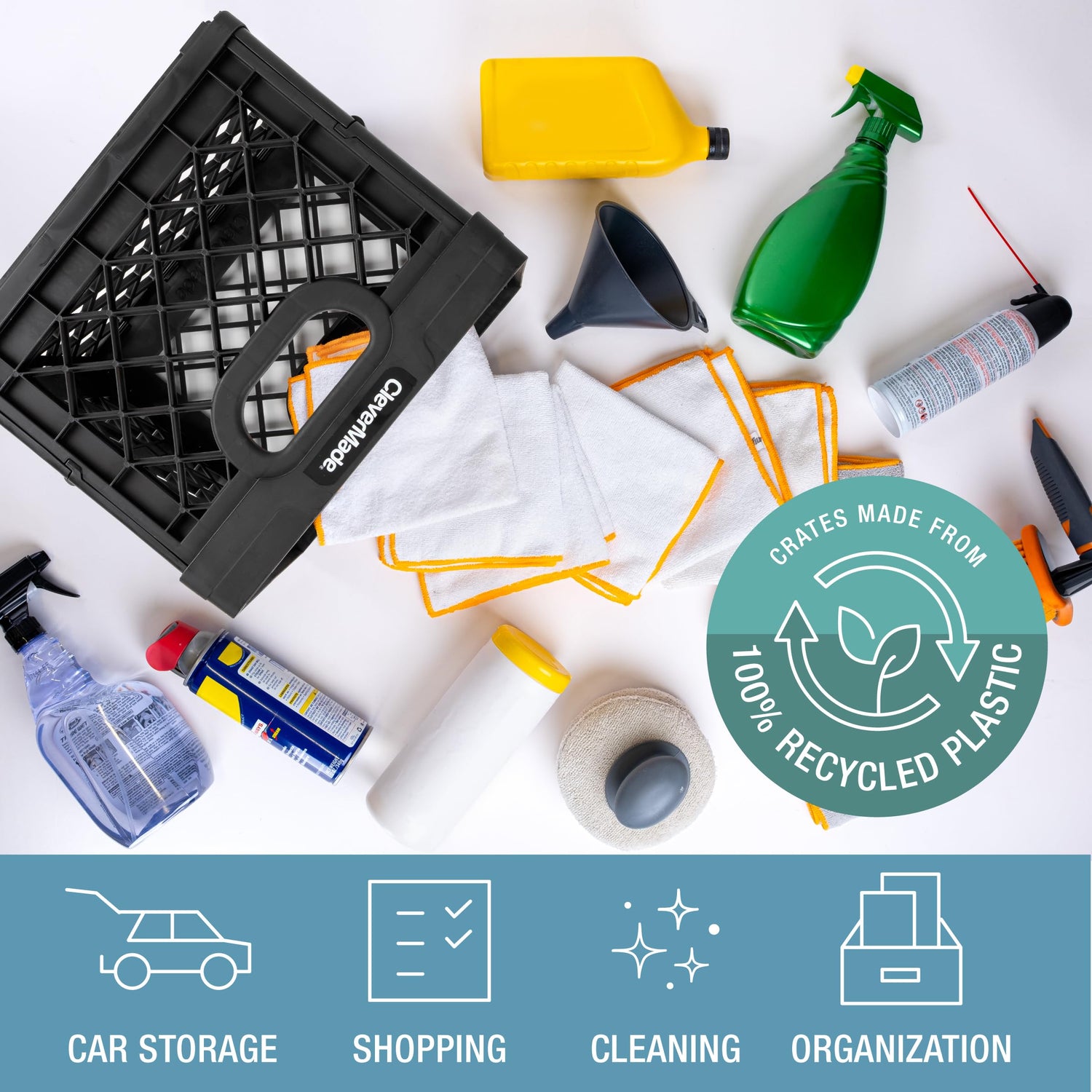 CleverMade Collapsible Milk Crate, Obsidian, 1PK - 25L (6 Gal) Stackable Storage Bins, Holds 50lbs Per Bin - Clevercrates are Heavy Duty, Plastic Collapsible Storage Crate for Multi Purposes