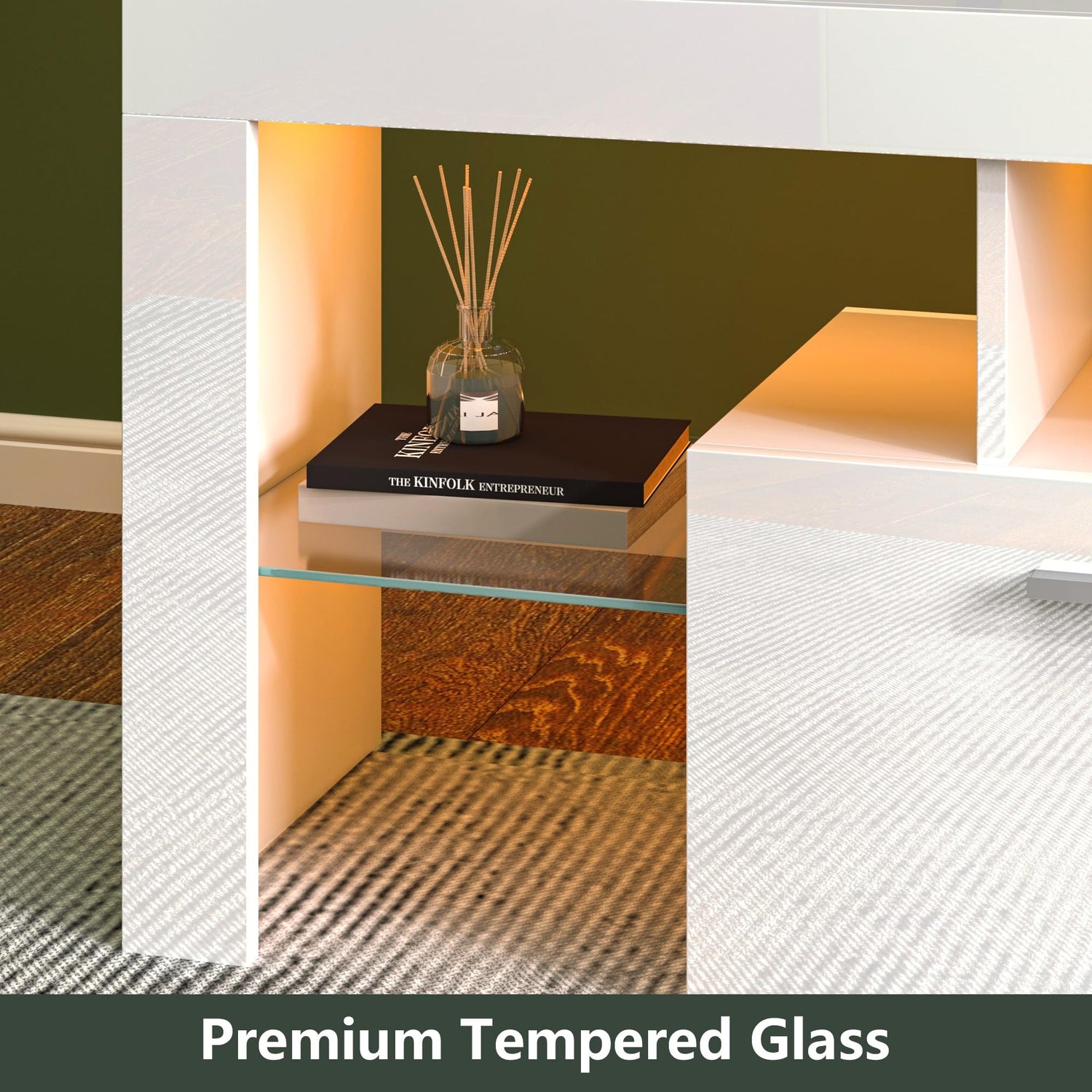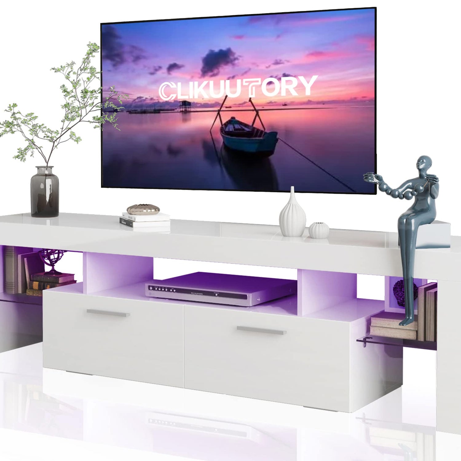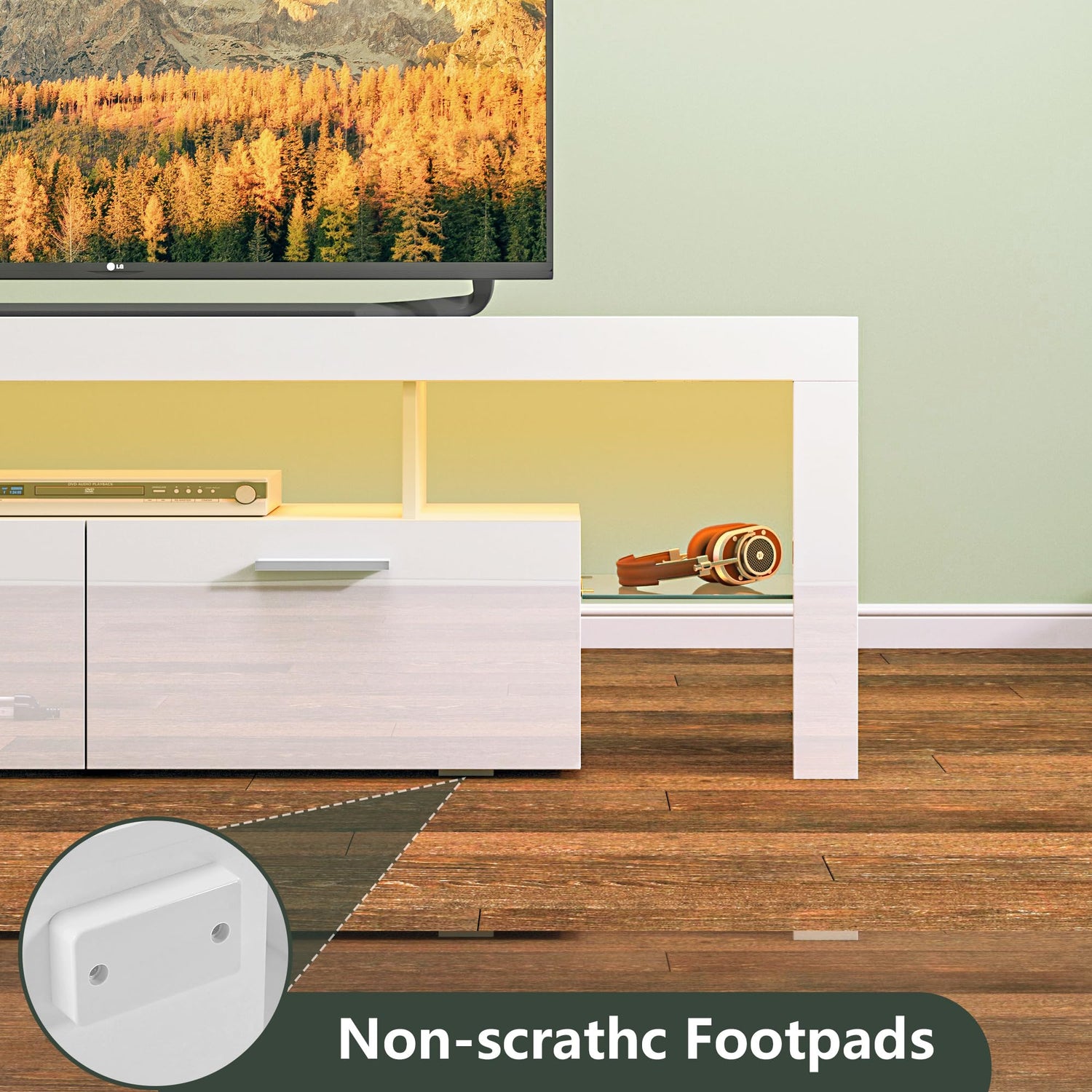 - 【Sufficient Space】-Along with an open-layer frame, each white LED TV stand with high gloss features two big drawers perfect for storing video games, movies, remote controls, entertainment accessories and more.