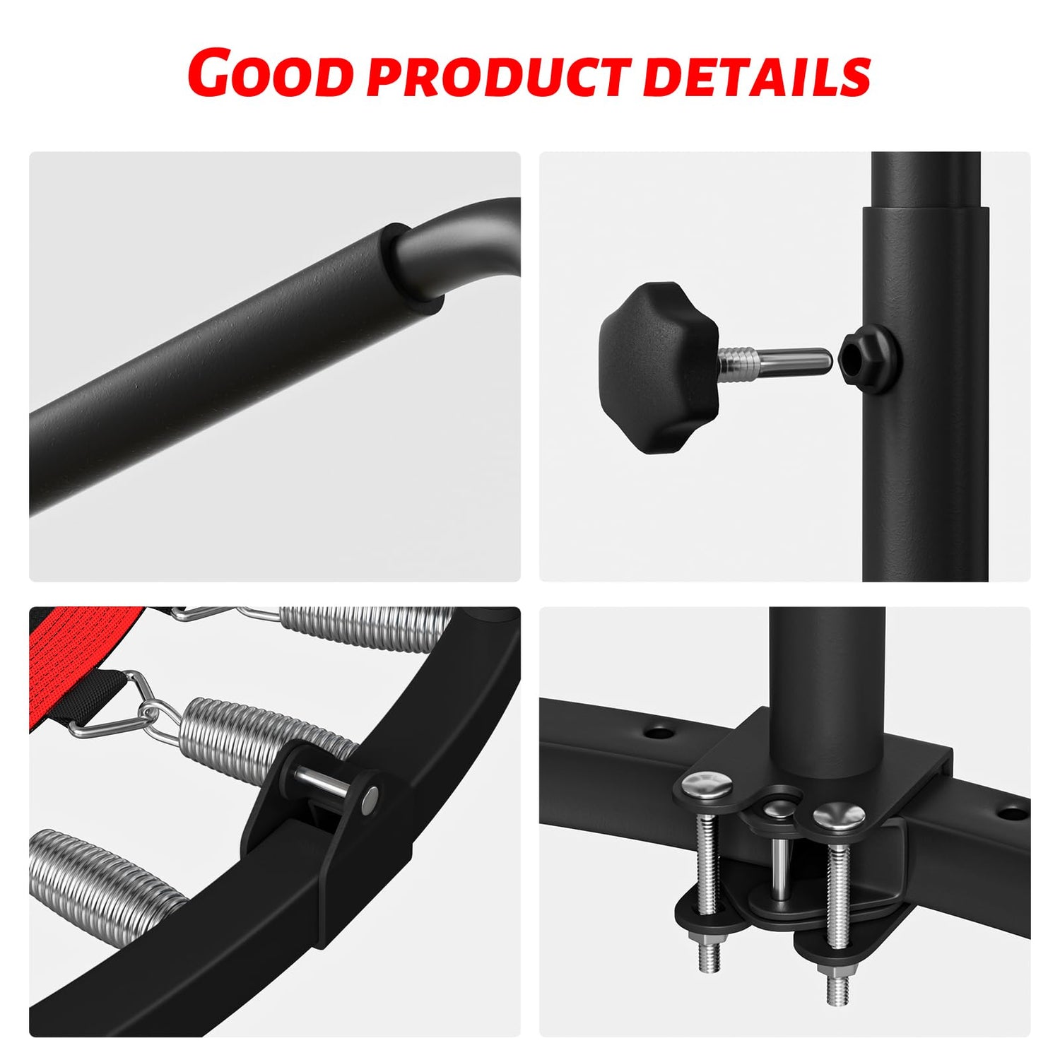 - ❤️Adjustable & Durable: Adjustable-5 height handrail allows all people, increased balance, and coordination. Designed with 28pcs thick steel tightly coiled rust-resistant springs, LOAD-500lbs, provide plenty of bounce for anyone in the family;
