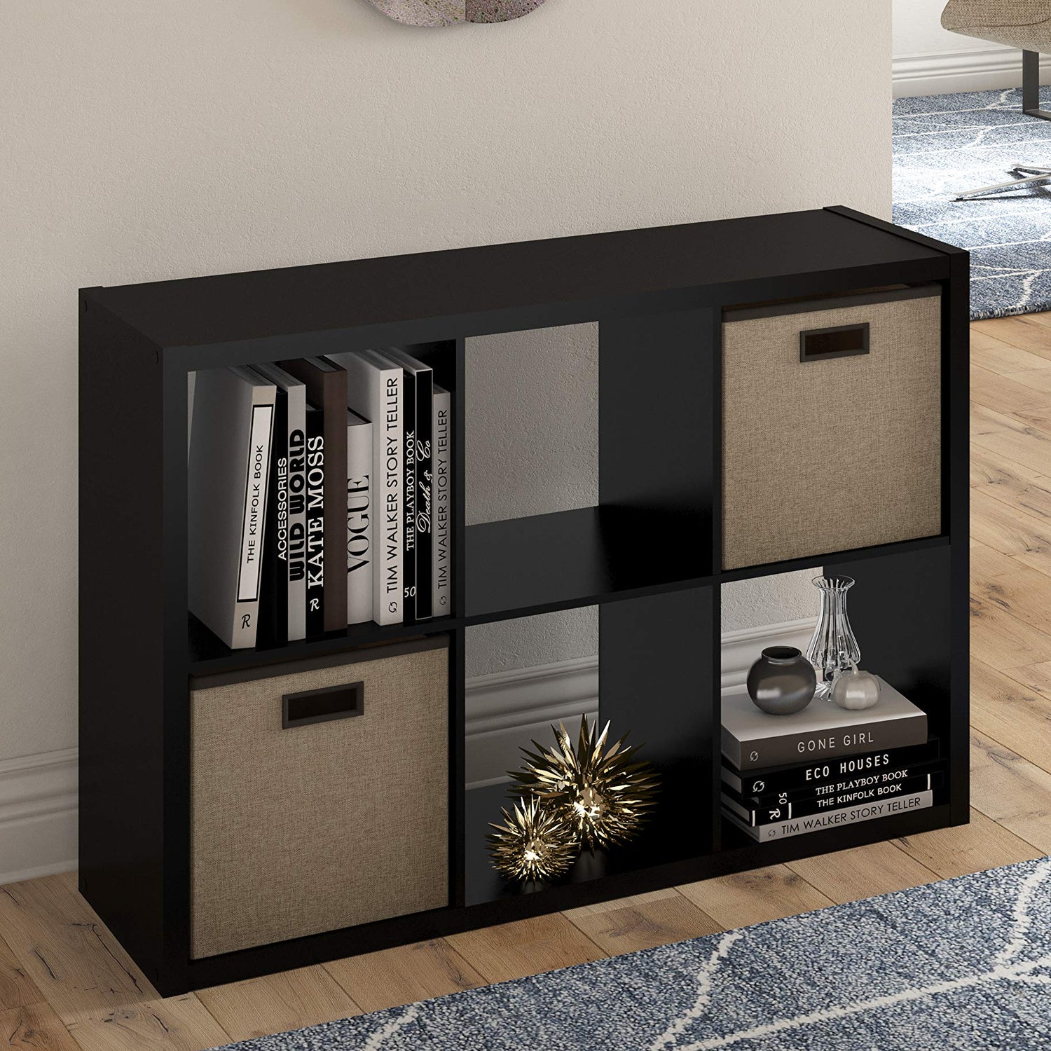ClosetMaid 6 Cube Storage Shelf Organizer Bookshelf with Open Back, Vertical or Horizontal, Easy Assembly, Wood, Black Finish