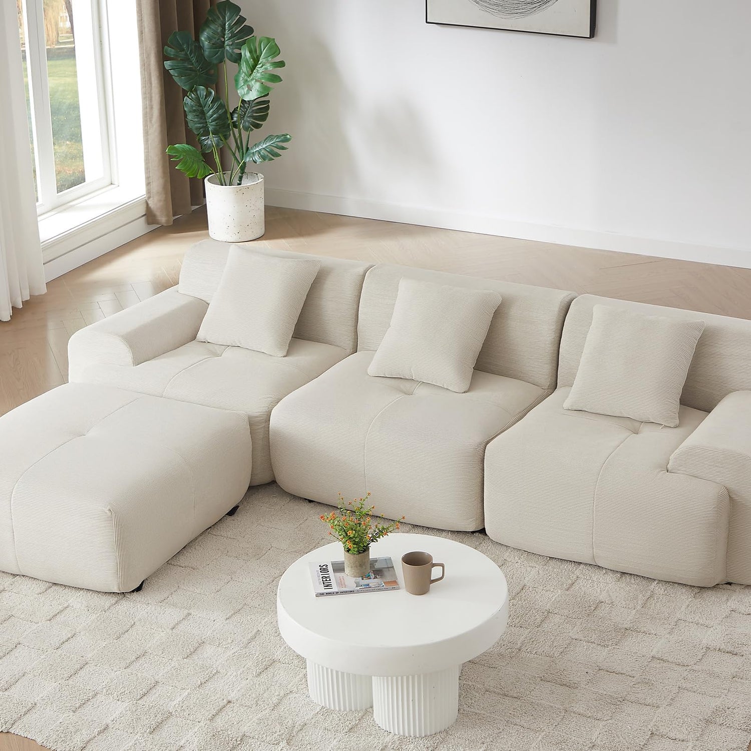 Cloud Couch β Boneless Modular Sectional Sofa with Ottoman, Oversized Sectional Couches for Living Room, Deep Seat, Soft Corduroy Fabric, Modern L-Shaped Lounge,U-Shaped Sectionals
