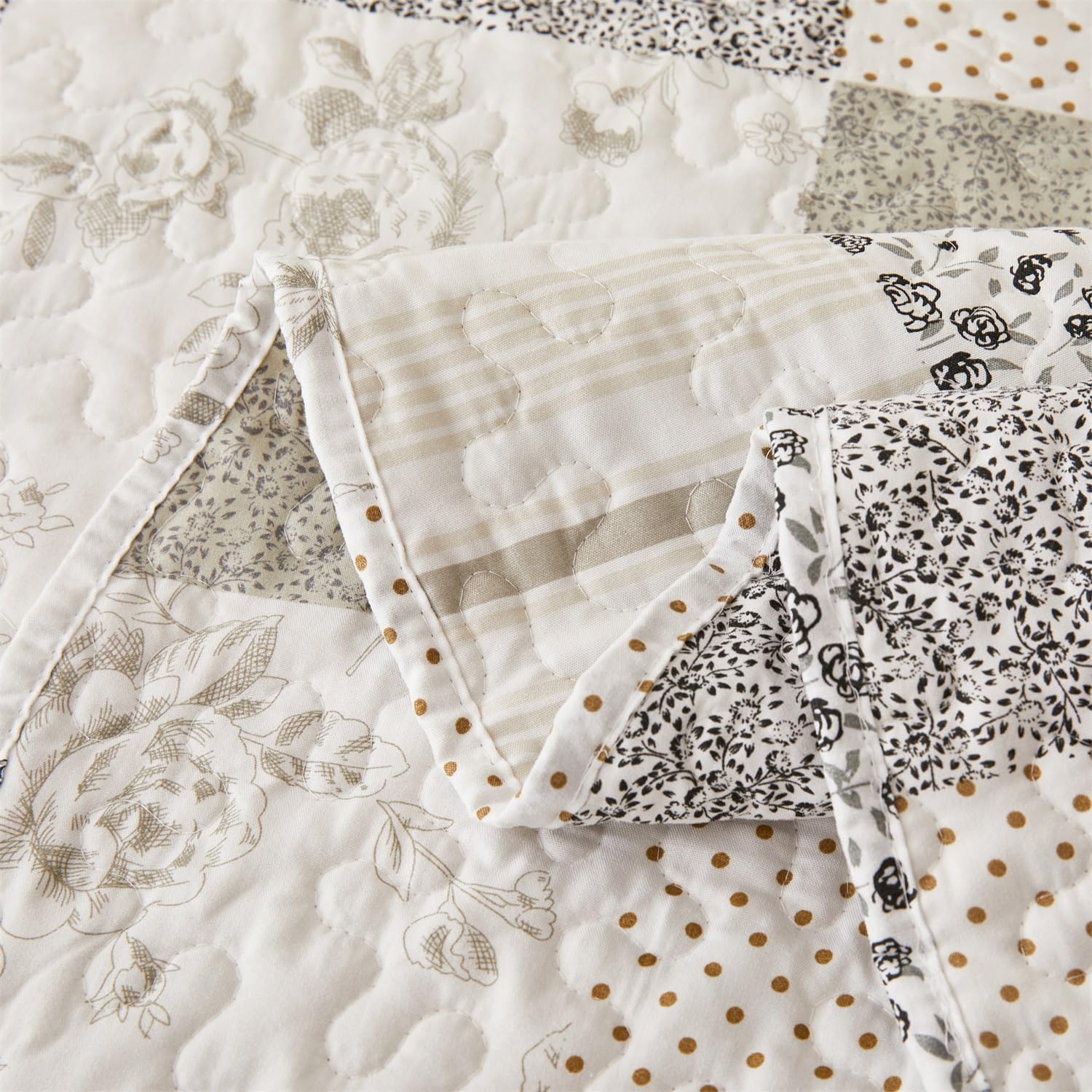 - 🌸【Unique Design】: The reversible quilt set features a unique classic patchwork made up with floral and striped patterns, easy to match your room decor, adding a flower garden style or bringing romance to your room. Soft shades of grey and stripes add to the beauty of this floral quilt set.