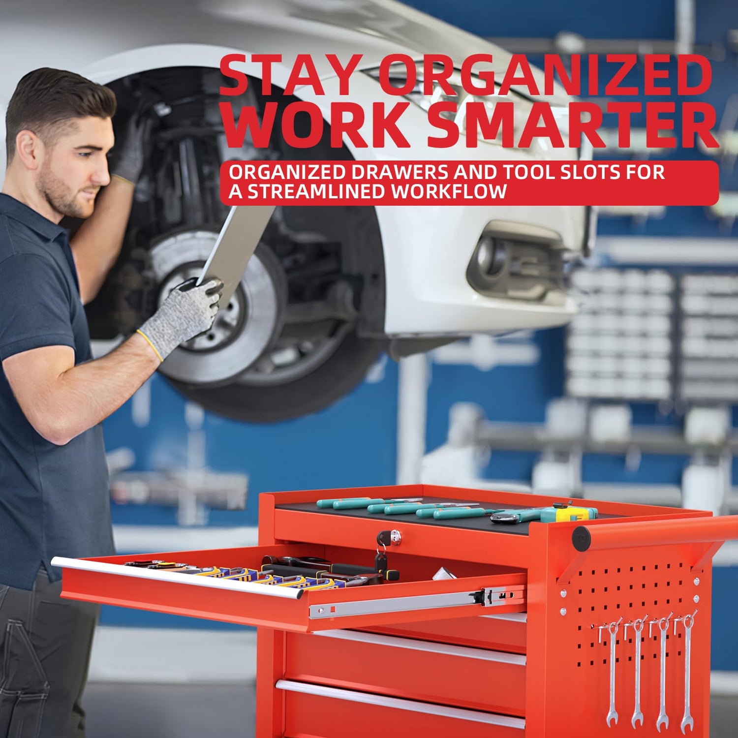 - Secure Lockable Mechanism: Drawer is equipped with a lockable mechanism, providing added security for your valuable tools and equipment, keeping them safe and protected when not in use.