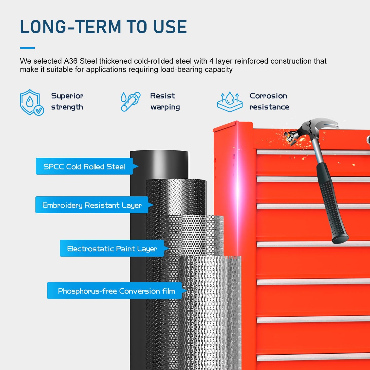 - Heavy-Duty Metal Construction: Constructed from durable metal, CMFYDAILY tool chest is built to withstand tough working conditions in garages, workshops, and home repair settings, ensuring long-lasting durability and reliability.