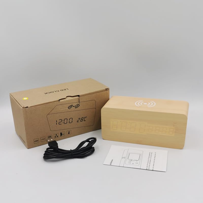 Details: Multifunctional LED digital alarm clock desktop charging clock 12/24H display unique home decoration bedroom living room office electronic wooden alarm clock and