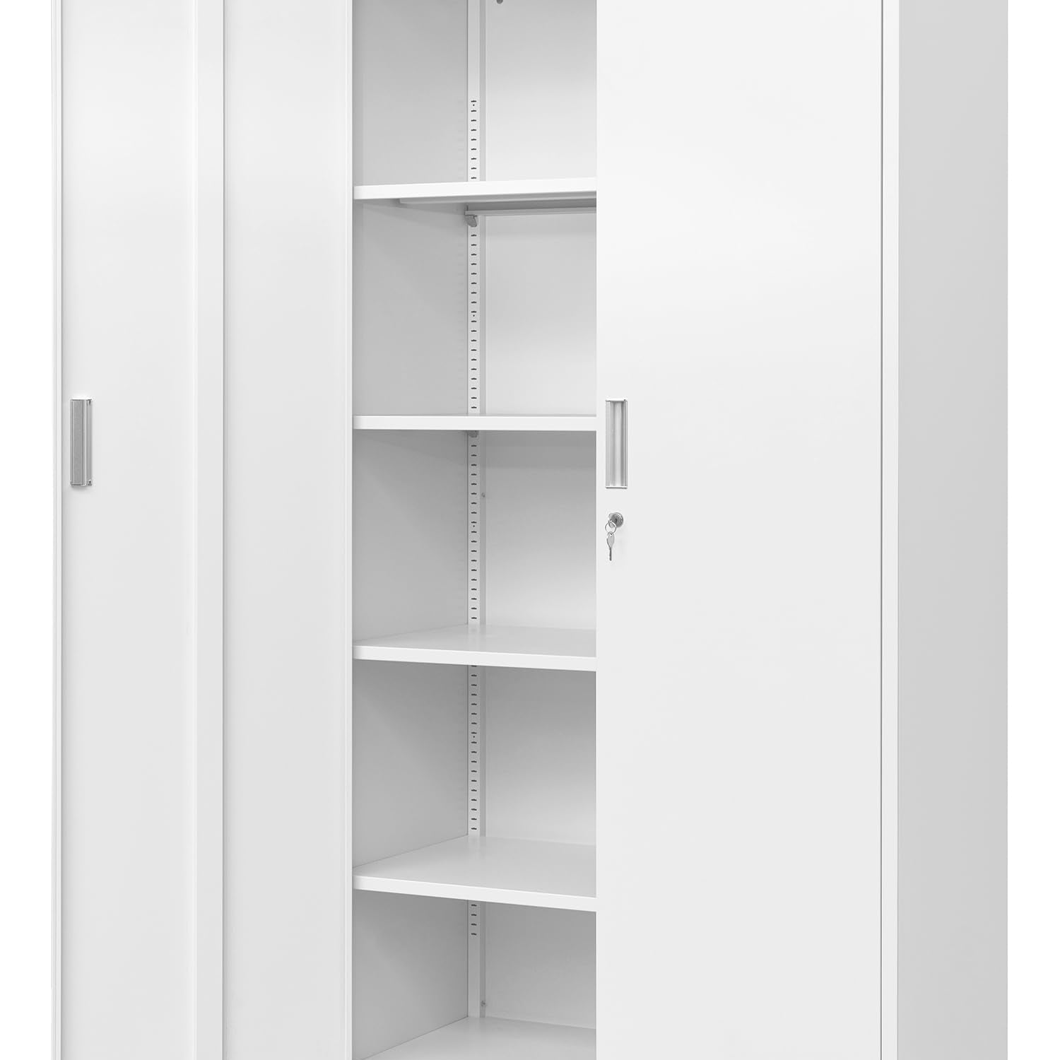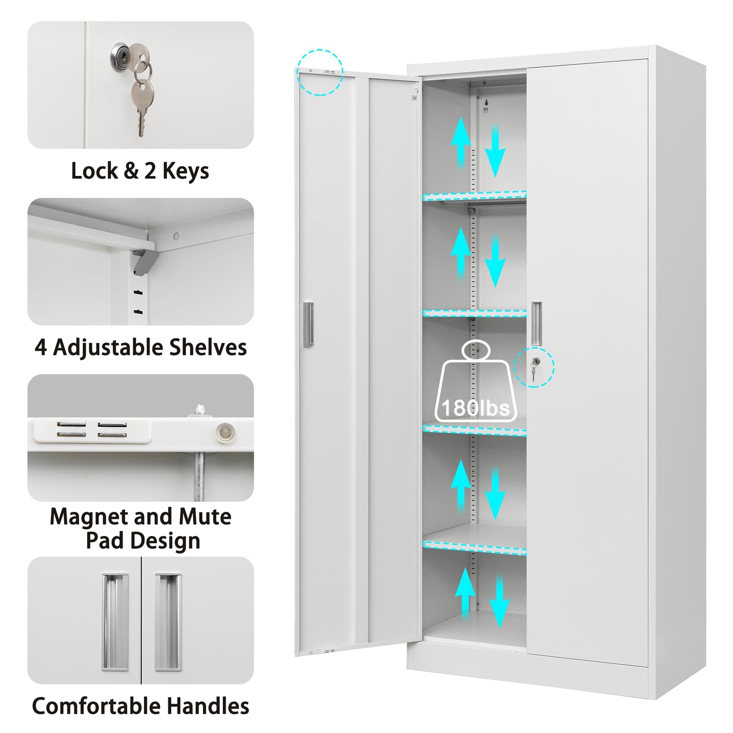 - MULTIPURPOSE - Metal storage cabinet with doors and shelves provide large and safe space. Magnet design keep the cabinet closed and mute pad could avoid noise. Metal cabinet with lock is a good choice for the garage, office, laundry room, home, kitchen pantry, utility room, workshop, school , basement, living room and so much more.