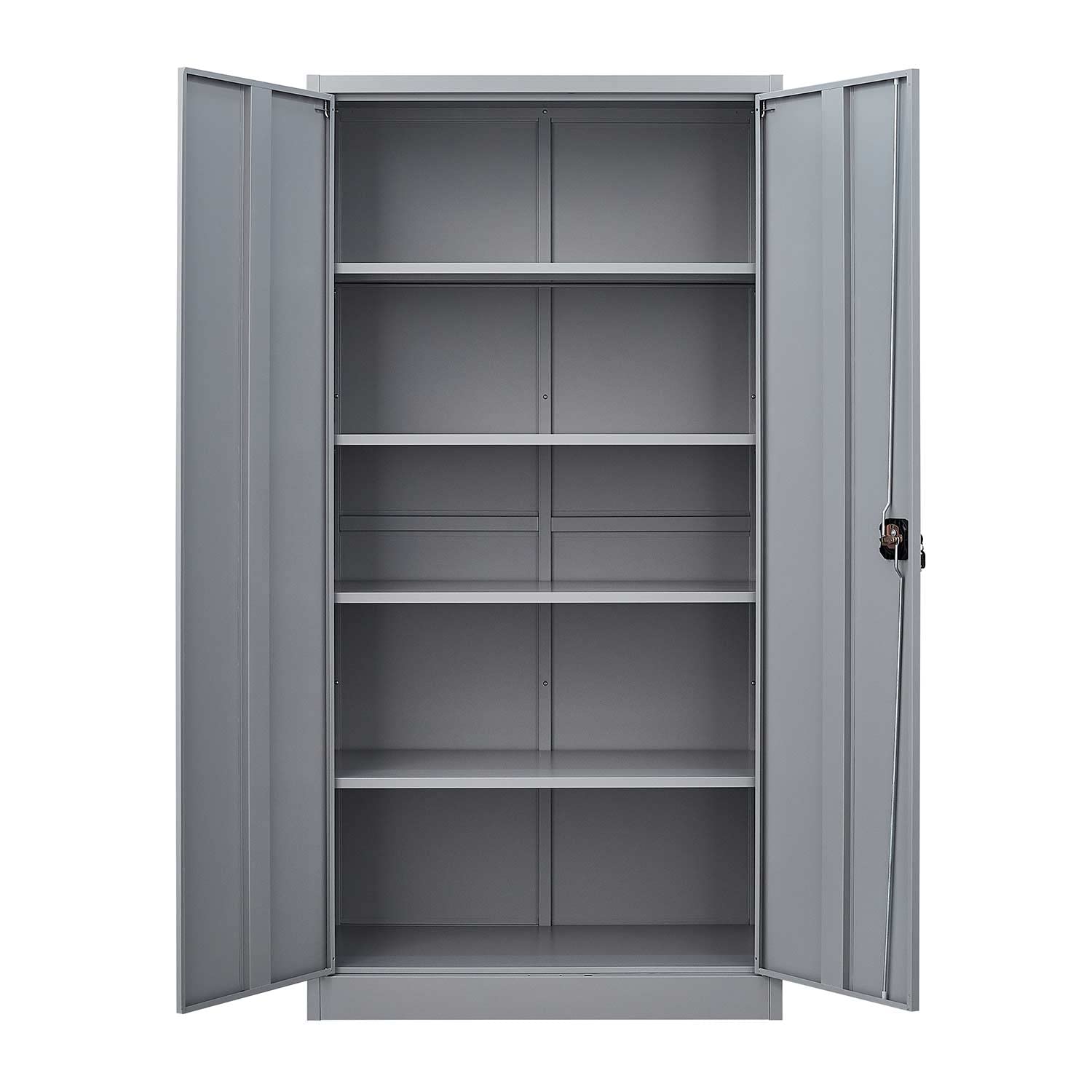 - MULTIPURPOSE - This metal storage cabinet with doors and shelves can be used in the garage, laundry room, office, or anywhere you need additional storage.