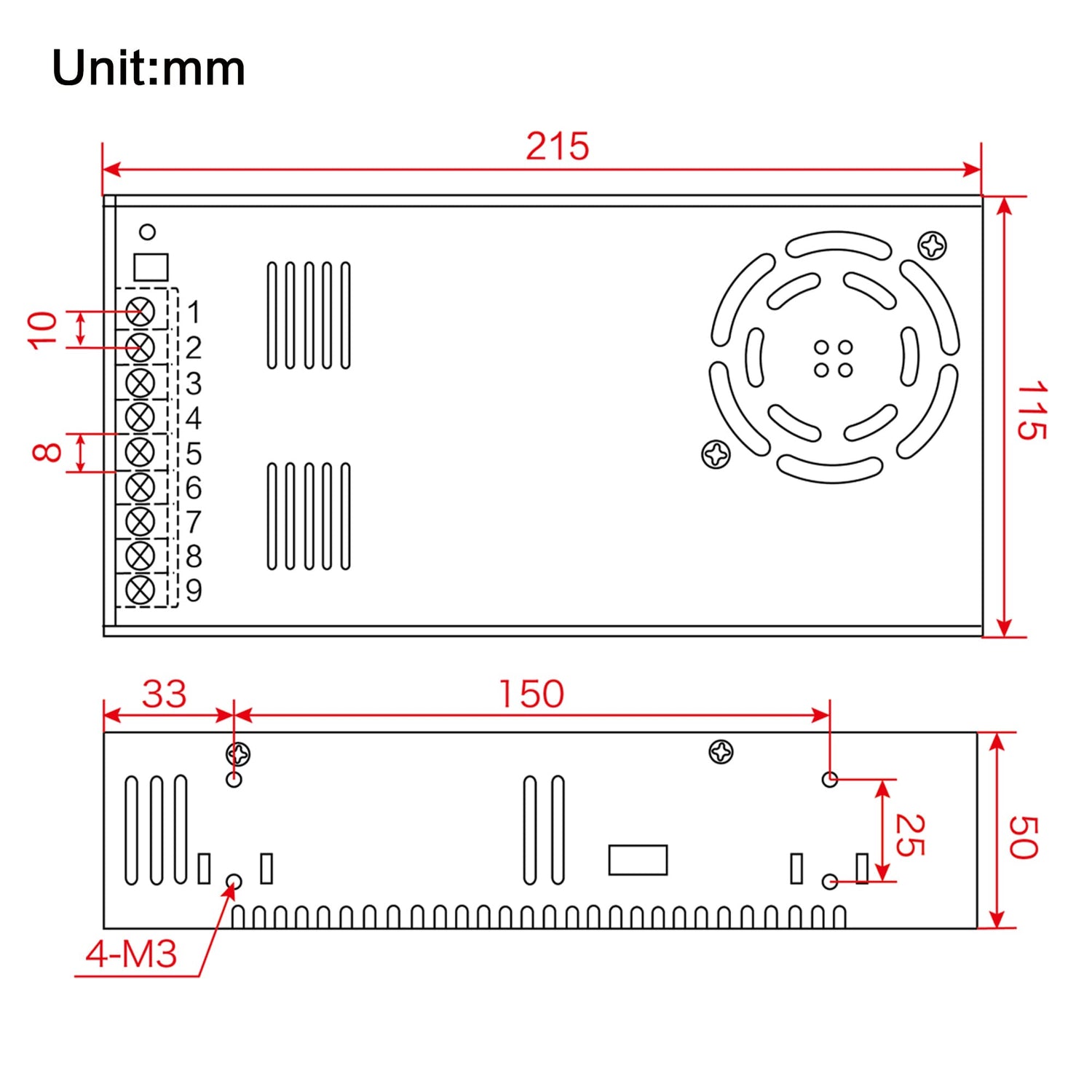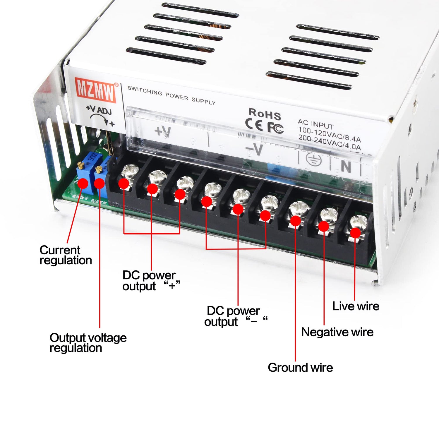- AC input voltage range: Switch Selection 100V-120V AC or 200V-240V AC; Product Weight: 2.4 lb; Product Size: 215x115x50mm / 8.46x4.52x1.96 inches