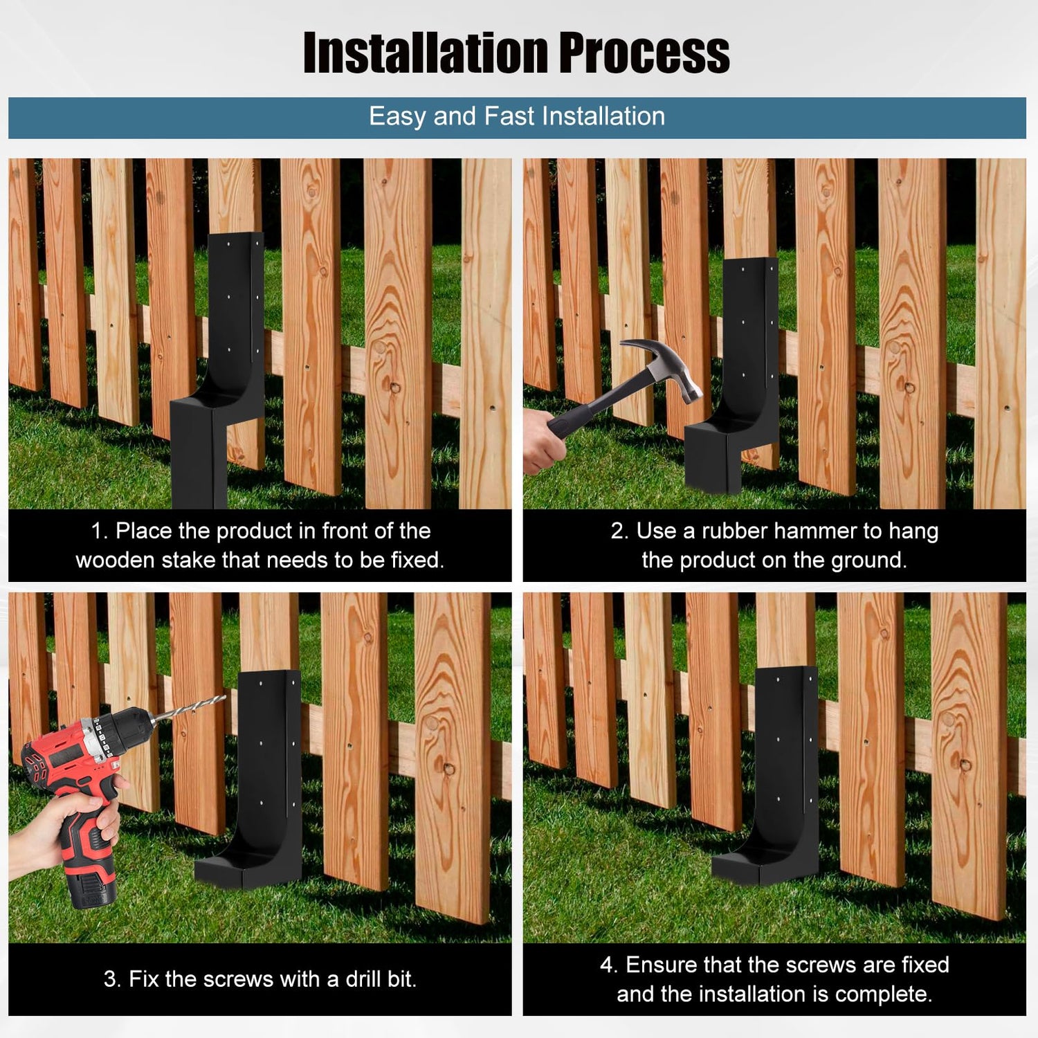 - 【Easy Installation】 No need to remove the tilted fence or dig holes in the ground. Simply insert the fence post anchor spikes into the wooden stake and hammer them into the soil. Then, screw the bolts into the front and side to connect with the wooden post. The installation process takes only a few minutes.