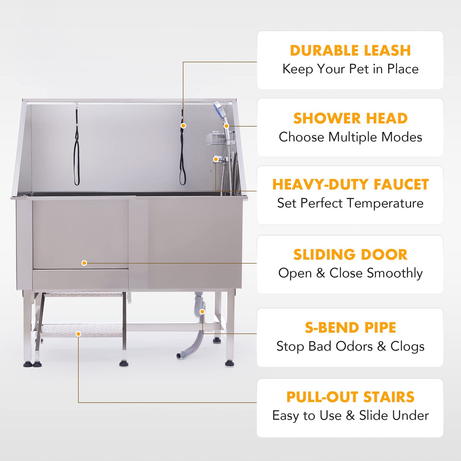 - Durable & Long-Lasting: Constructed from rust-free 304 stainless steel, this dog bathtub tank is built to last and can support up to 260 lbs. With superior sealing and durability for long-term use