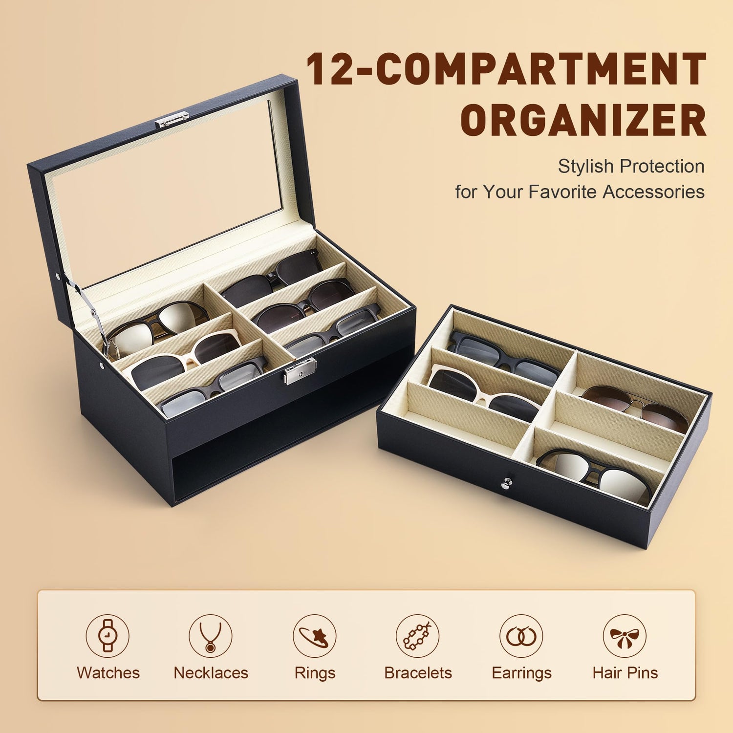 - Not Your Average Glasses Organizer ----- Comes with 12 compartments, perfect to store your sunglasses, with the help of a dividr (NOT included) it can be easily turned into a wonderful organizer for your jewelry and watches