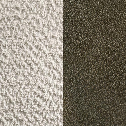 - Soft vanilla white fabric upholstery creates contrast against a bronze finish frame