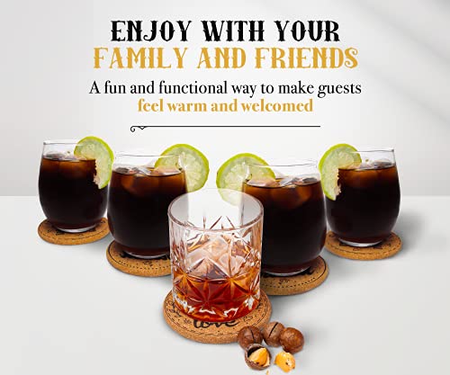 Coasterlux Cork Coasters for Drinks Absorbent with Holder - Cute & Funny Set of 8 Large Round Outdoor Cup Wooden Table Protection, Coffee Trivet, Cups and Mugs Cool Drink Coaster Gift