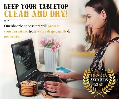 - BLACK METAL HOLDER INCLUDED: Our custom drink coasters are bigger, heat-resistant, absorbent and thicker (0.32 inches) with a stainless steel metal holder and a beloved gift box included. Keep them organized & ready to be used anytime
