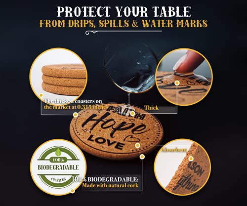 - 100% BIODEGRADABLE: Made with 100% natural cork, the coasters are eco-friendly and enhance your home decor with their eye-catching grains. The large 4-inch size suits all commercial type cups, mugs and glasses