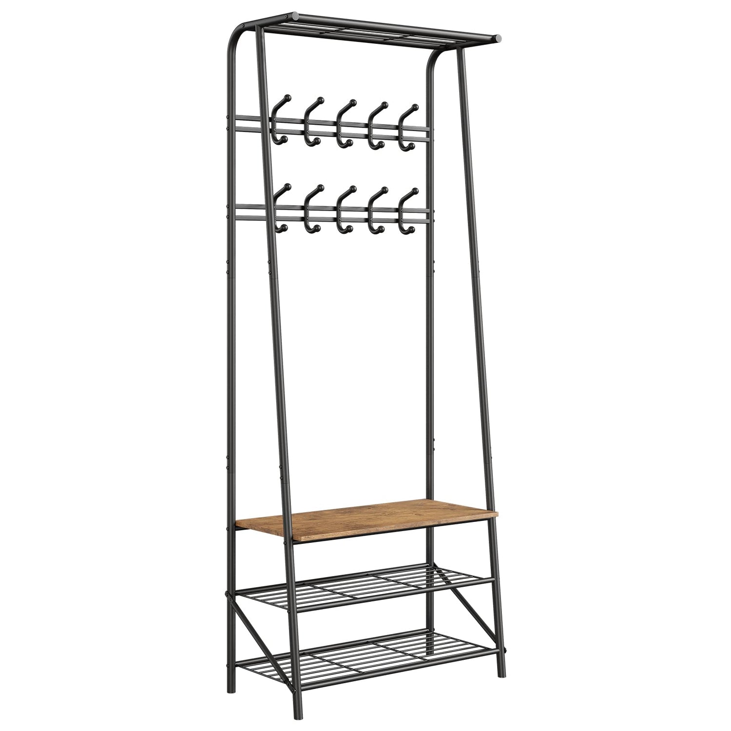 - 4-in-1 Hall Tree: Combining top storage shelf, coat hooks, shoe bench and shoe rack, this all-in-one freestanding coat rack offers you convenient storage for your coats, shoes, and on-the-go items and a seat to change shoes.