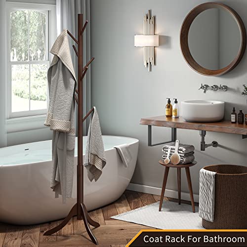 Coatrack 8 Standing Bamboo Coat Rack Hat Hanger 8 Hook for Jacket, Purse, Scarf Rack, Umbrella Tree Stand (Brown)