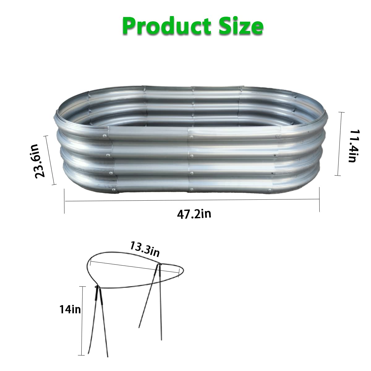 - Outdoor galvanized planter boxes size: 4×2×1 ft, Can hold garden soil and fertilizers: 7.14Cubic feet, with more than 3 installation methods, you can use galvanized sheets to splice out the size and shape you want, use your design skills and imagination, use this Galvanized garden beds outdoor with metal plant stakes to DIY your beautiful garden.