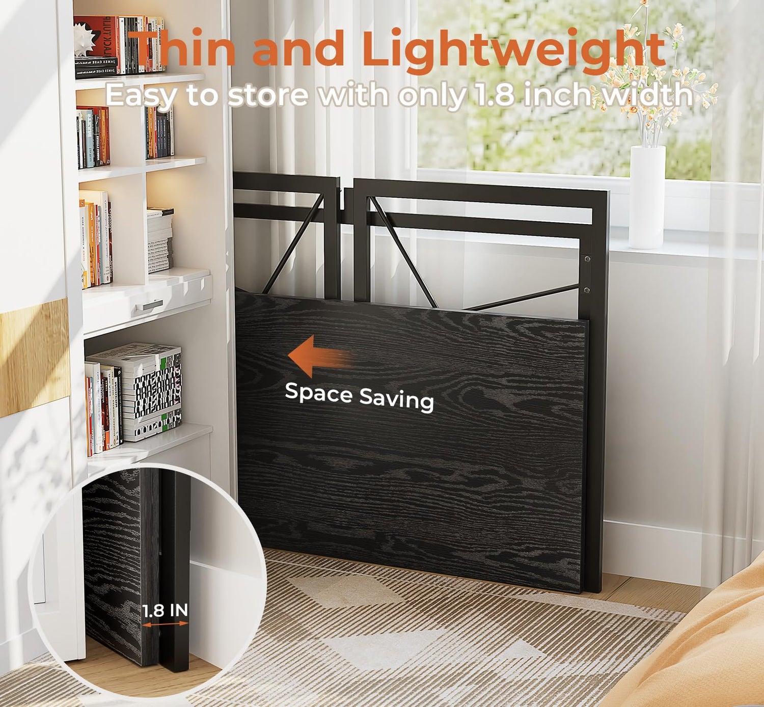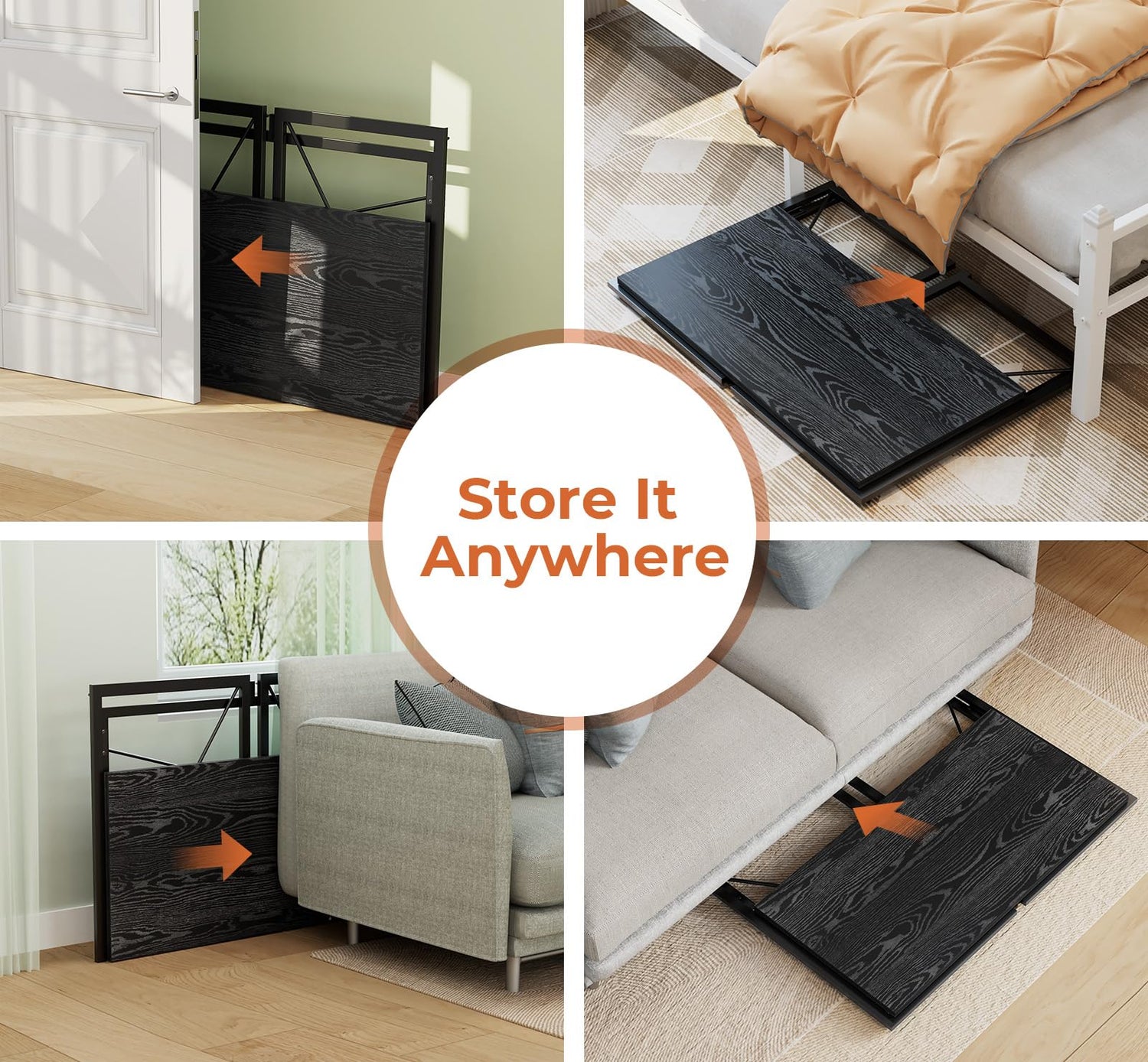 Coavas 39.4 inch Folding Desk No Assembly Required, Writing Computer Desk Space Saving Foldable Table Simple Home Office Desk, Black Wood