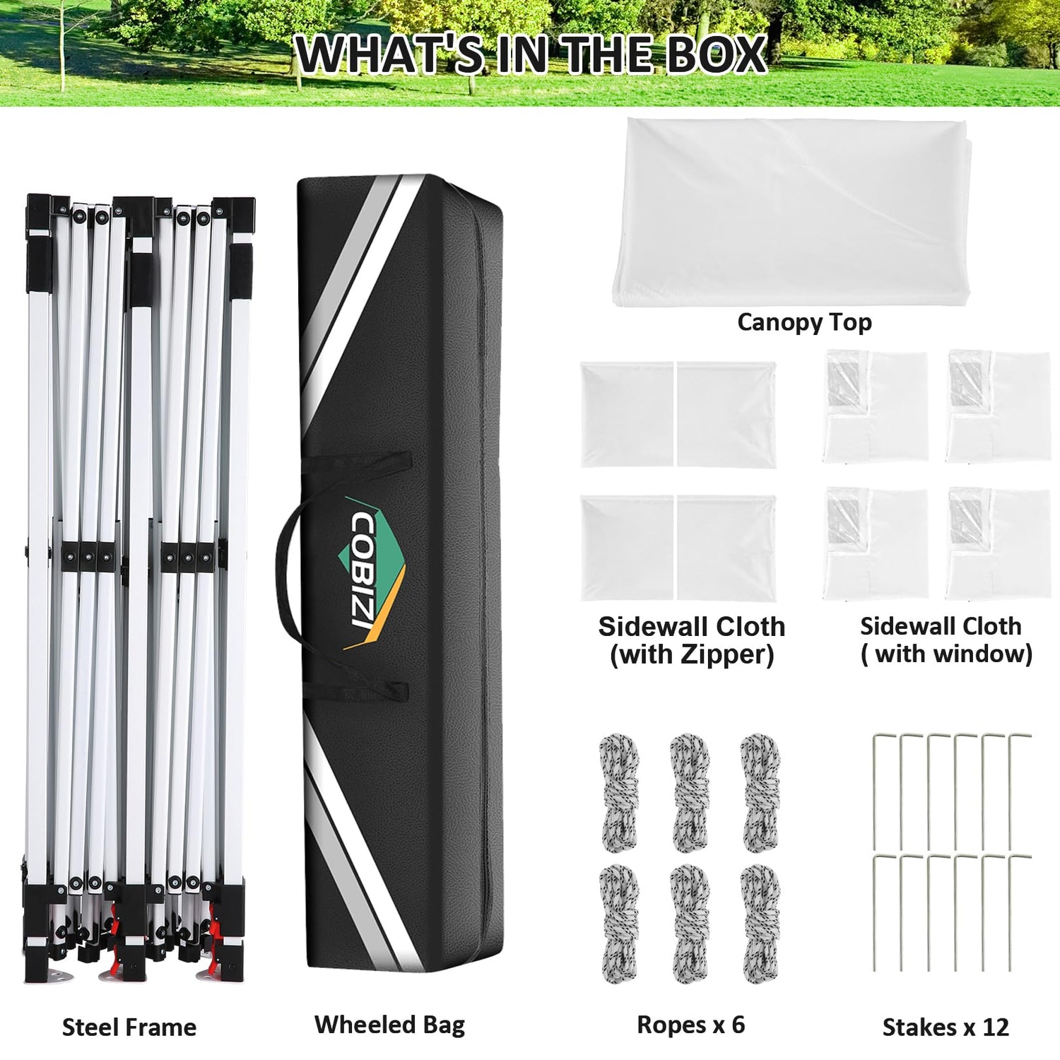 COBIZI 10x20 Pop Up Canopy Tent with Sidewalls, Commercial Ez Up Canopy, 3 Adjustable Heights, Waterproof and UV Protection 50+, Outdoor Gazebo Pop up Tent for Parties & Patio with 4 Sandbags