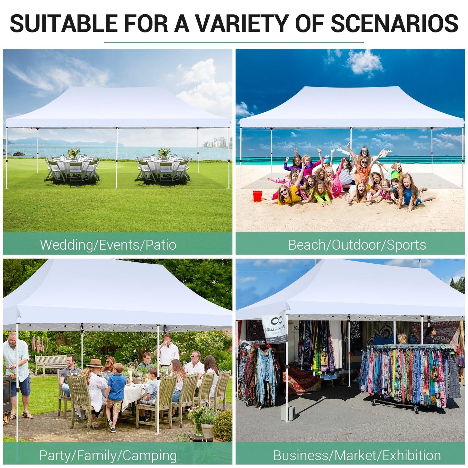 - 【Portable and Easy to Store】: Our 10x20 pop up canopy tent with sidewall comes with a carrying bag, making it easy to store and transport. It's recommended to pack away the tent when not in use to prolong its lifespan, ensuring that you have a reliable shelter ready for your next outdoor event.