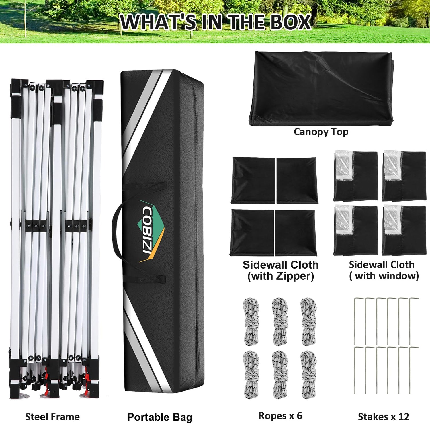 - [Durable and Protective Construction]: The Cobizi 10x20 pop-up canopy is constructed with premium materials. The 210D Oxford fabric is coated with a special layer that provides SPF 50+ UV protection and water resistance, ensuring durability and protection from the elements. The frame is made of high-quality alloy steel with rust-resistant powder coating, guaranteeing long-lasting use.
