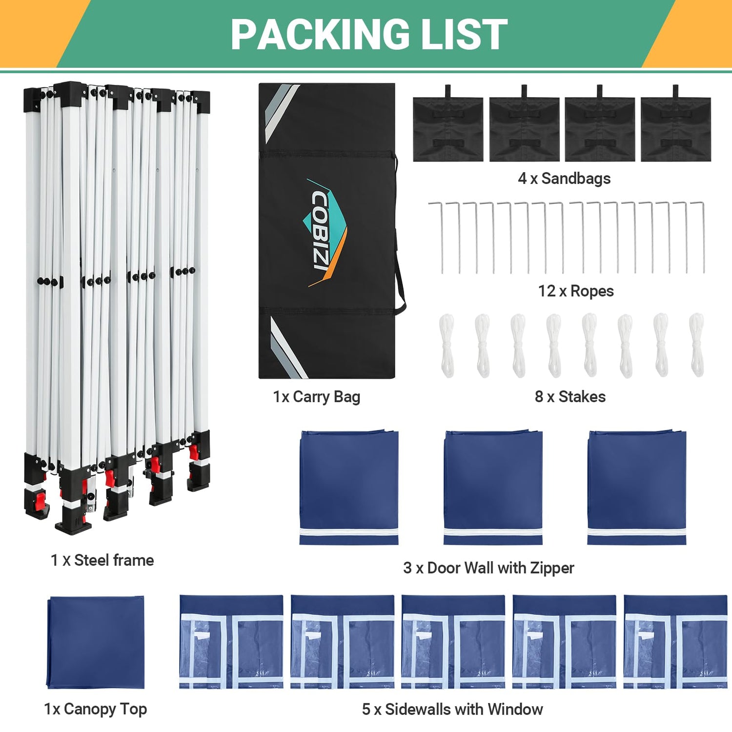 - đ€ăCOBIZI CommitmentăOur tent frame comes with a one-year warranty, while the fabric and accessories come with a six-month warranty. We also offer 24/7 customer service to assist you in understanding the product better and resolving any quality issues you may encounter after purchase. We are honored to be of service and welcome any inquiries you may have.
