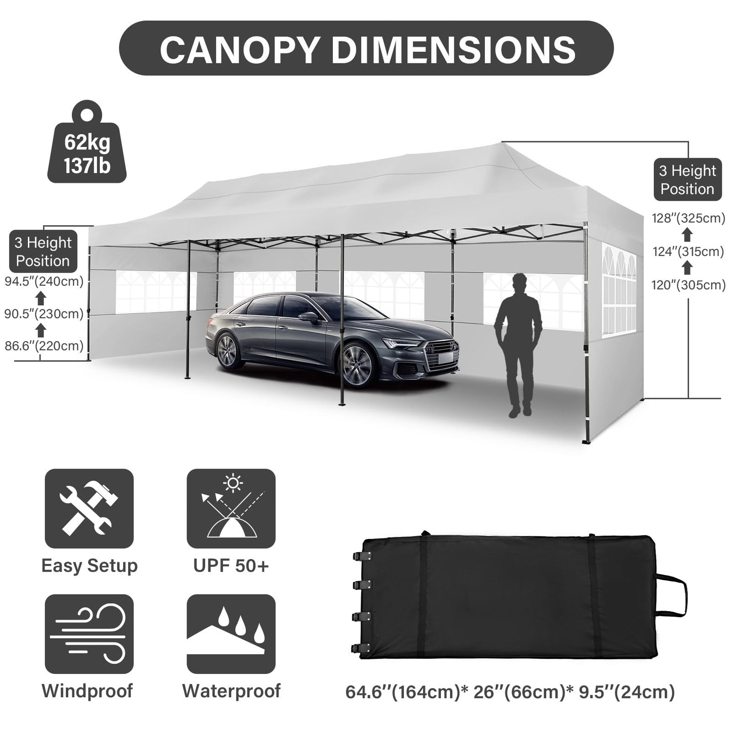 COBIZI 10x30 Pop up Canopy Tent Heavy Duty with 8 Sidewalls, Easy Set-up Commercial Outdoor Party Tent, 100% Waterproof Wedding Tent Gazebo, 3 Height Adjustable with Wheeled Bag, White