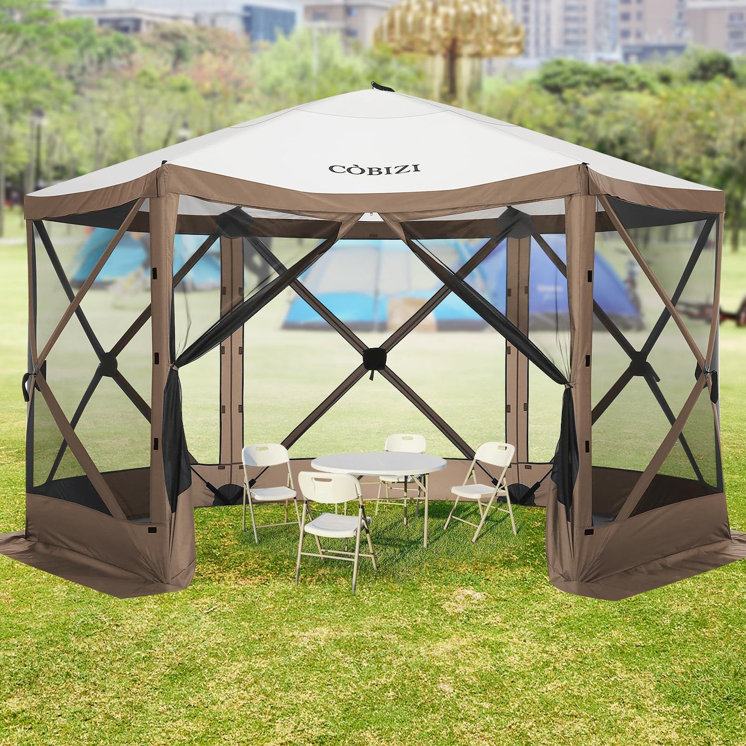 COBIZI 12x12ft Pop up Gazebo Screen Tent Screen House for Camping, Camping Outdoor Screened Gazebo with Mosquito Netting, Portable Hub Tent with Carrying Bag and Ground Stakes, Brown(Upgraded 2.0)