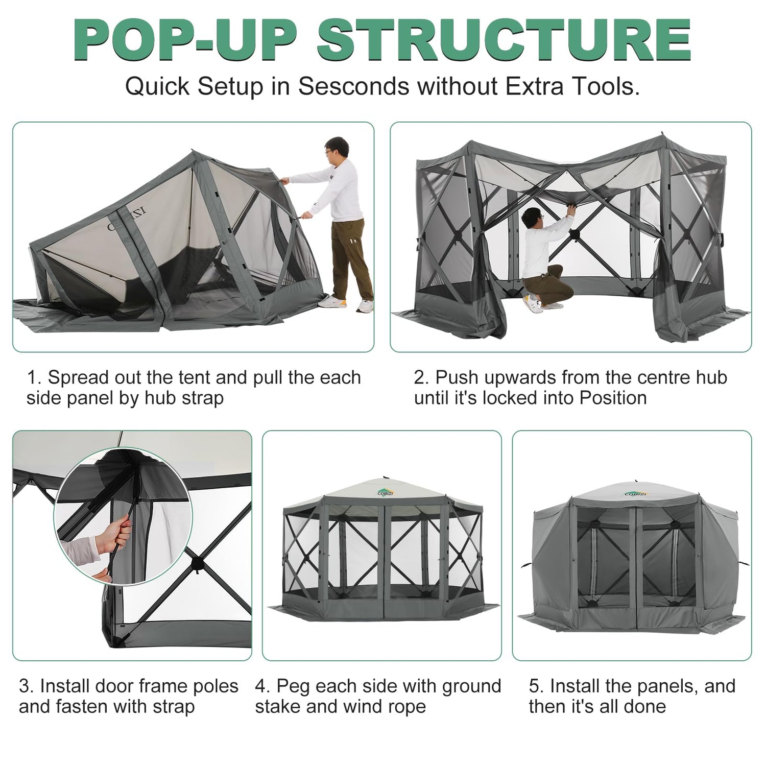 - ✅【Versatile Removable Sidewalls】 Enjoy ultimate flexibility with our removable sidewalls. Attach them for complete privacy during outdoor activities, or remove them to benefit from high-density mesh that offers both fresh air and scenic views while effectively keeping mosquitoes at bay.