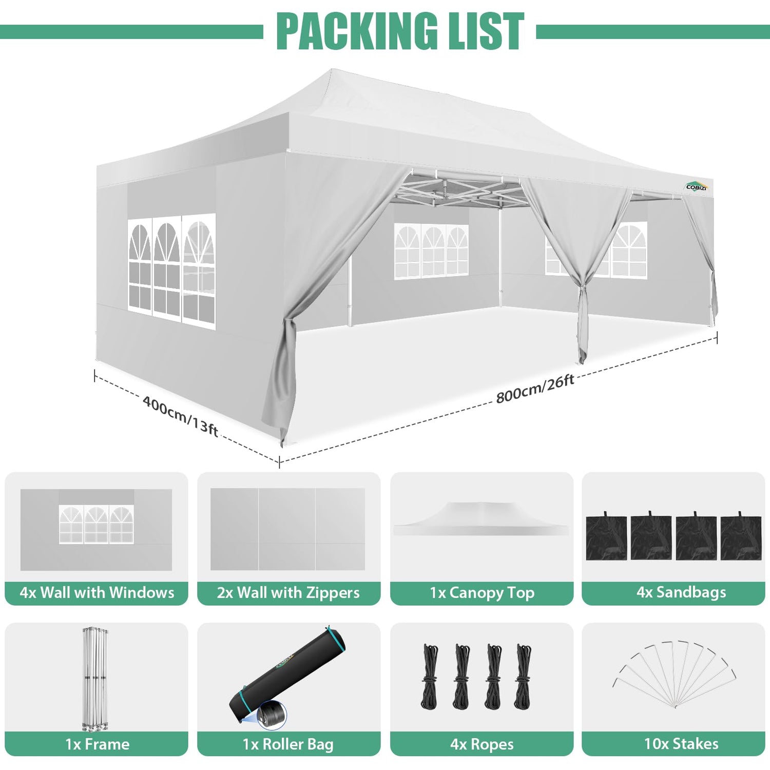 COBIZI 13x26 Pop Up Tent 13x26 Canopy with Sidewalls Heavy Duty Canopy Party Tent for Parties, Outdoor Wedding Large Event Tent Wind Waterproof UPF 50+ Ez Up in Garden Lawn with Roller Bag, White