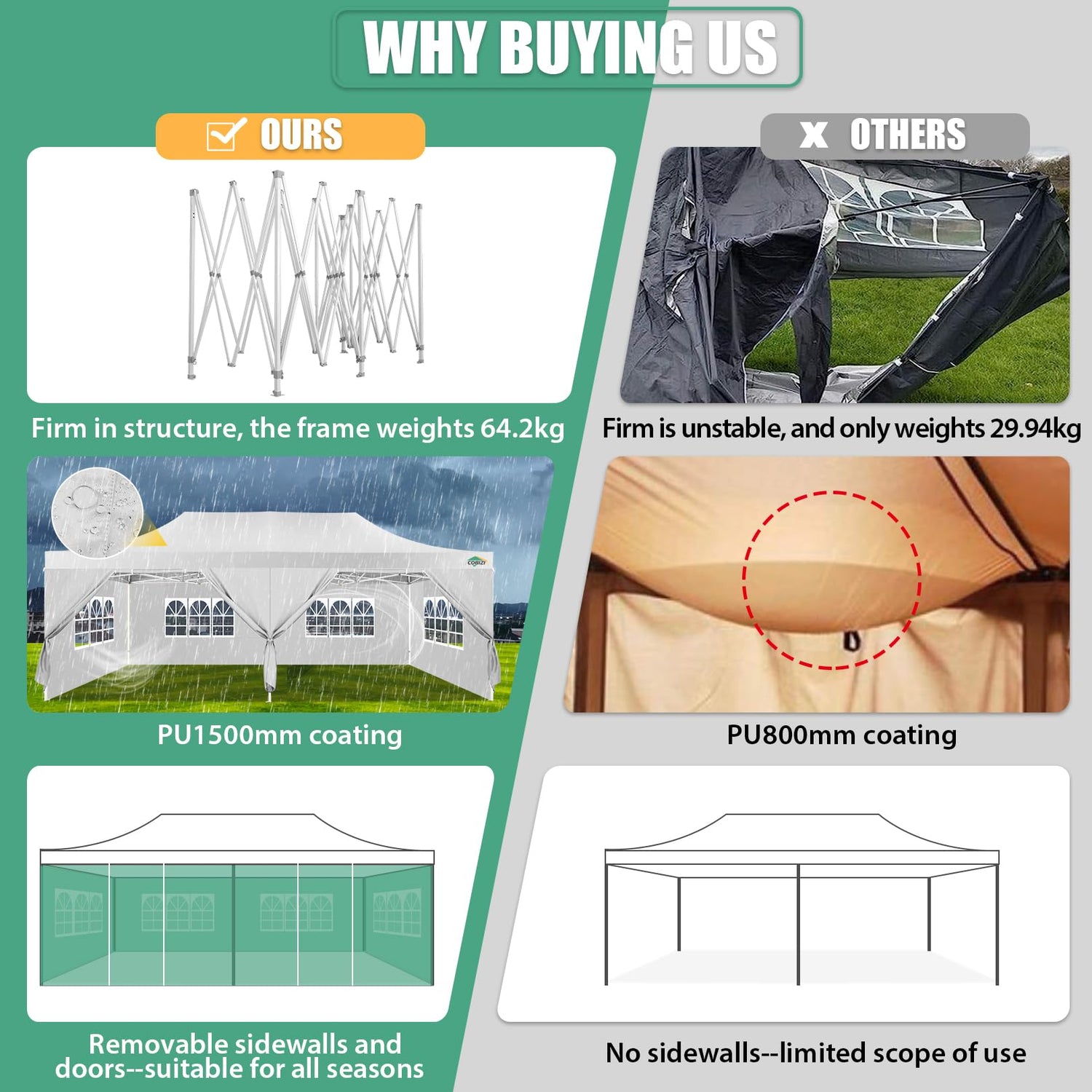 - [Durable Framework/Wind Resistance]: This party tent has durable high grade corrosion resistant steel truss with hardened through bolts and is pre-assembled, so it can be installed without any tools. Besides, screens, ropes, and ground stakes ensure the event tent is securely fixed to the ground and resistant to strong winds.