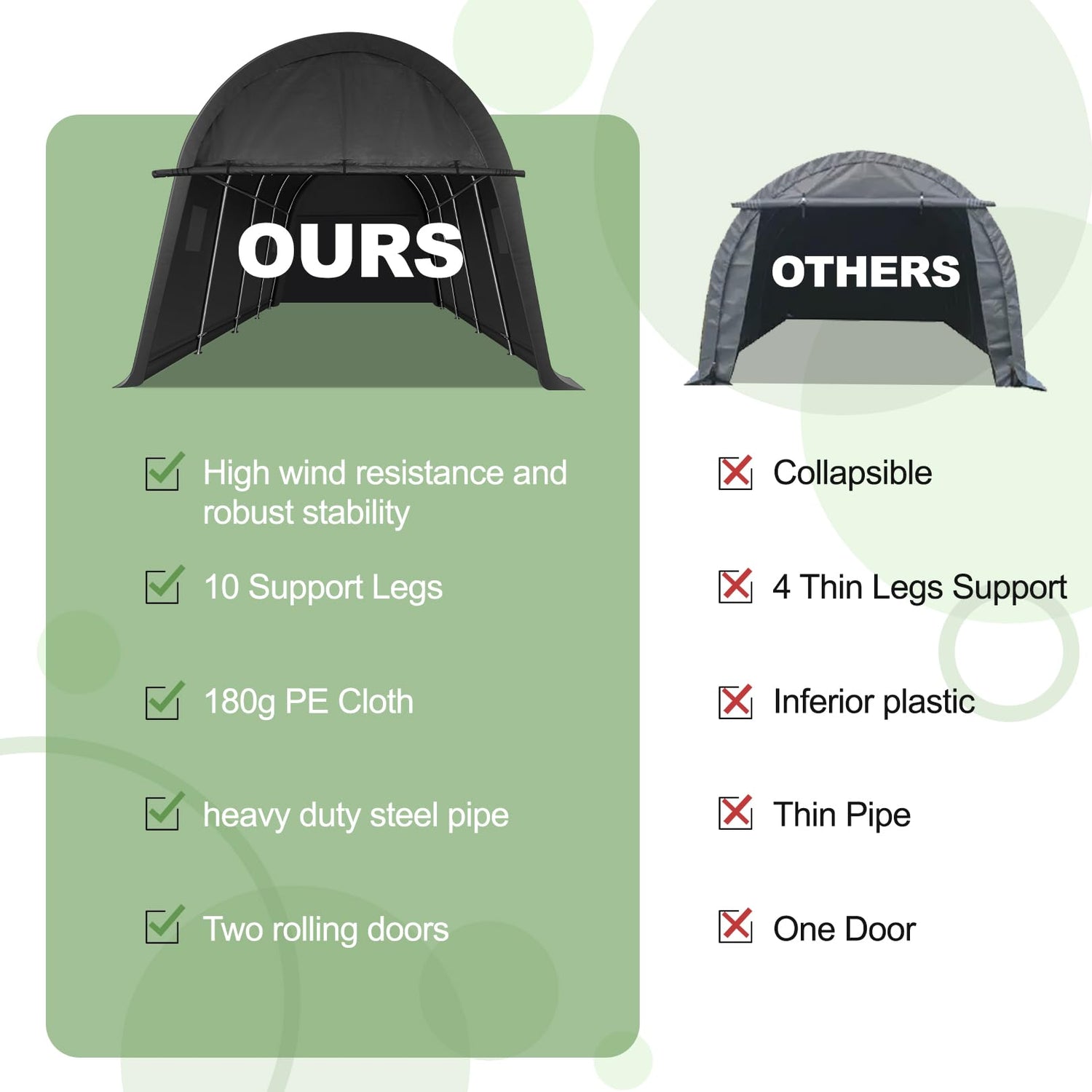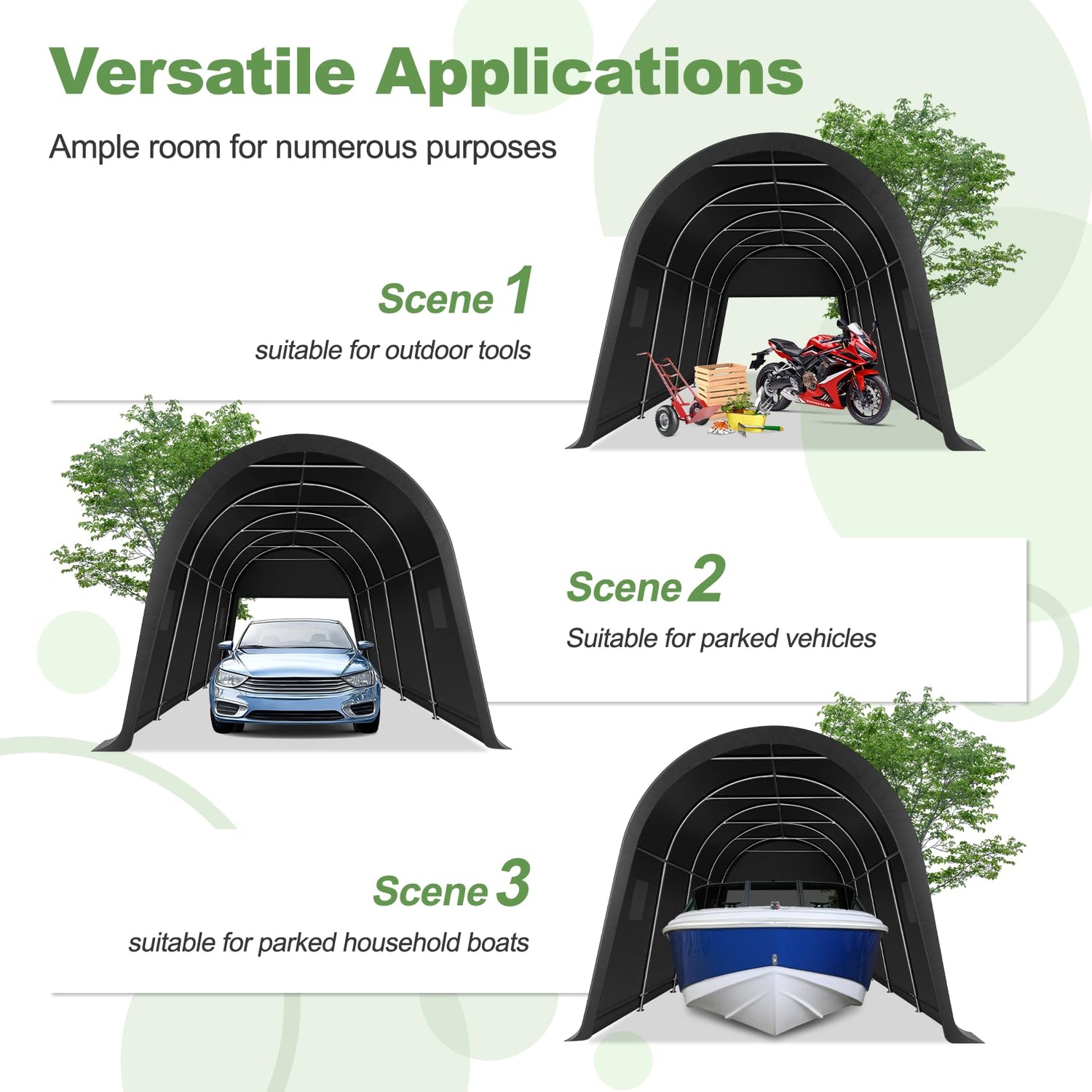 - ✅ 【Round Style Roof & Anti-Snow Waterproof】 Our carport canopy 12x20 heavy duty features a round roof design and 180g PE waterproof tarpaulin, effectively reducing wind resistance and allowing for quick drainage to prevent water and snow accumulation, thereby extending the lifespan of the carport.