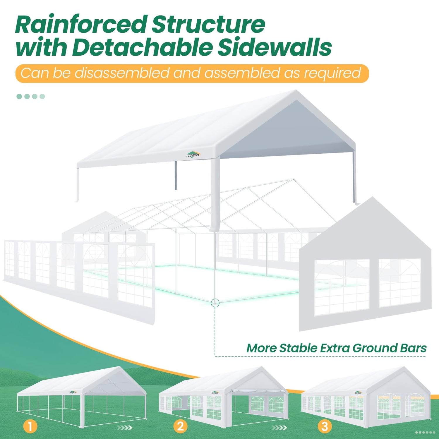 COBIZI Party Tents 20x40 Heavy Duty Waterproof, Tents for Parties with 8 Removable Sidewalls & 4 Built-in Sandbag, Outdoor Wedding Large Tent, UV 50+, White