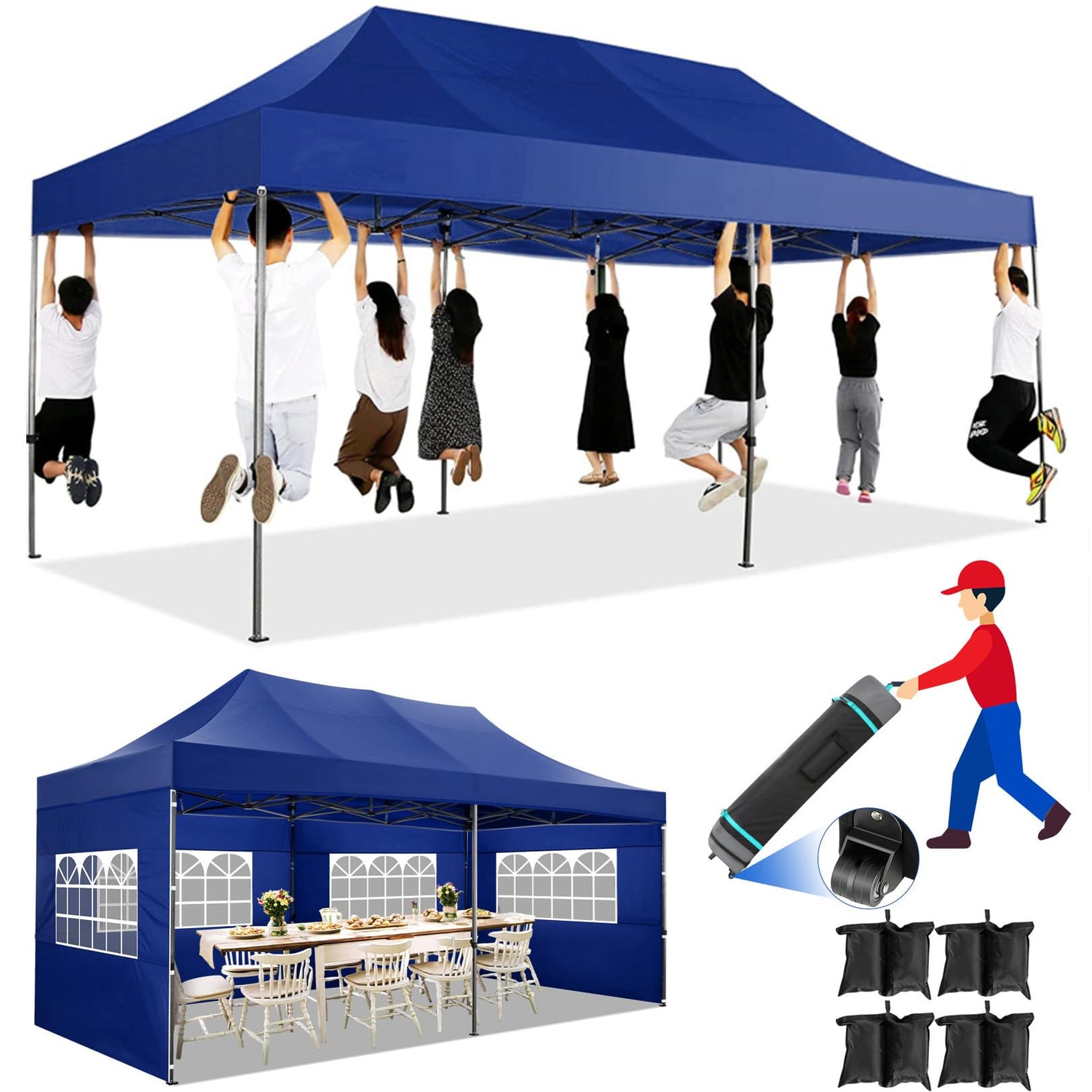 COBIZI Pop up Canopy Tent 10x20 Heavy Duty Gazebo with 6 Sidewalls, UPF 50+ All Weather Waterproof Commercial Outdoor Wedding Party Tents Canopy with Roller Bag, Dark Blue