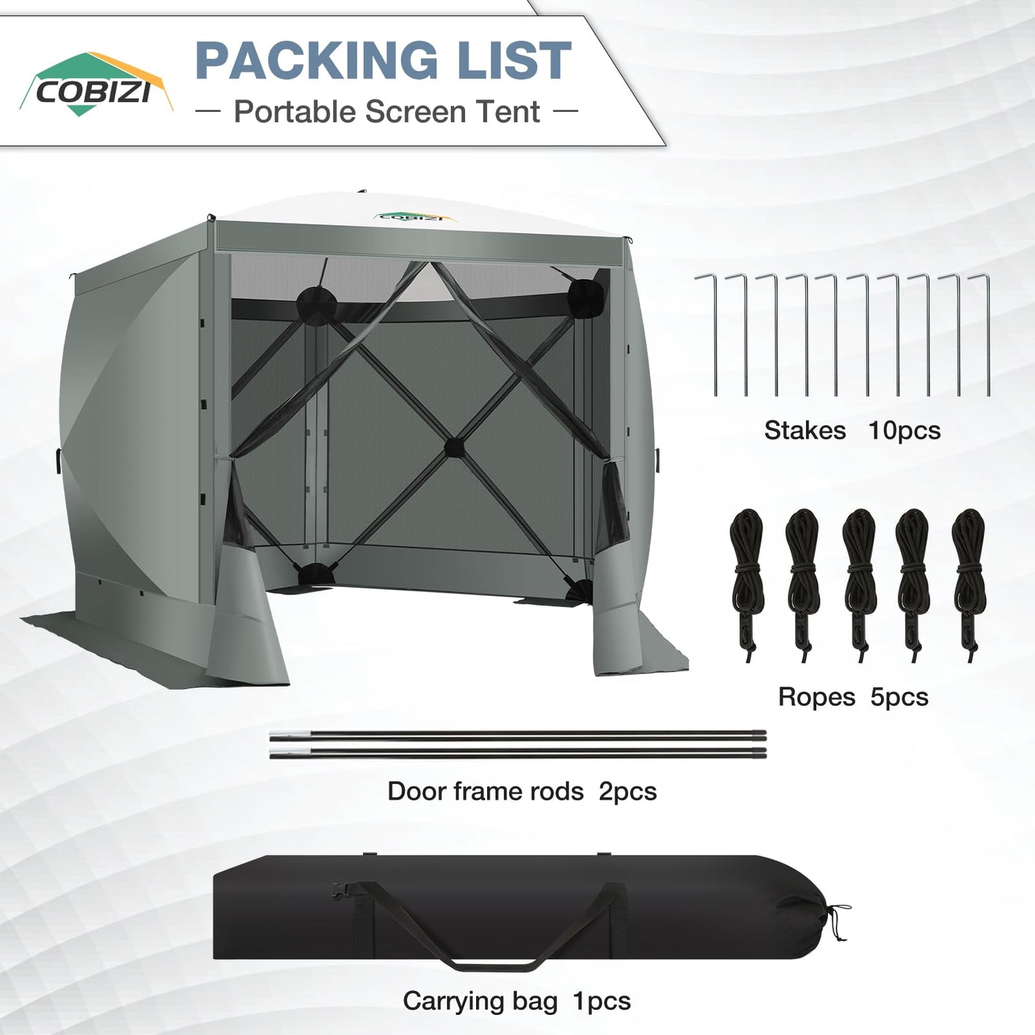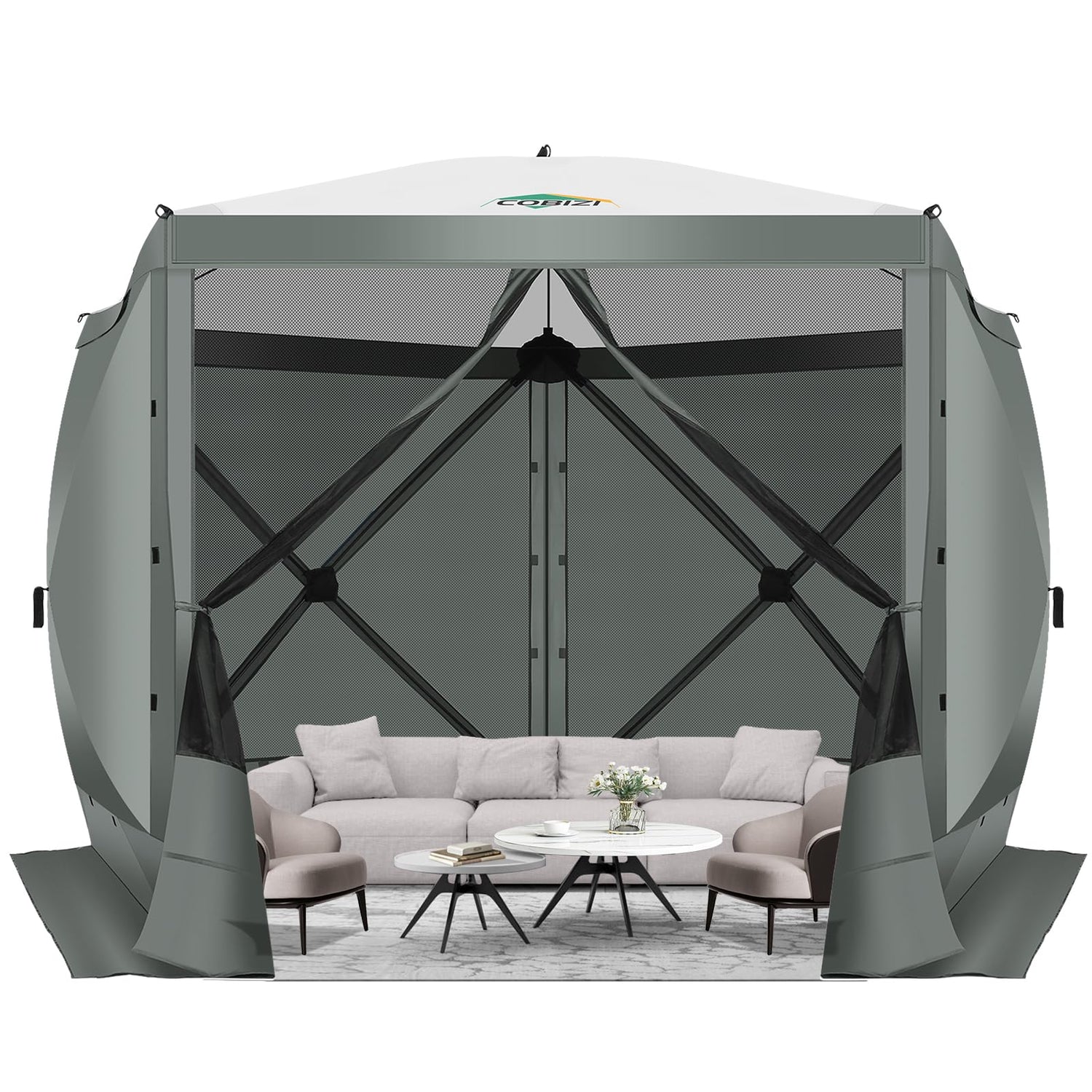 COBIZI Pop Up Gazebo Screen Tent Screen House for Camping, 10x10 Screen Room with Mosquito Netting, Hub Tent Instant Screened Canopy with Carrying Bag and Ground Stakes, Gray