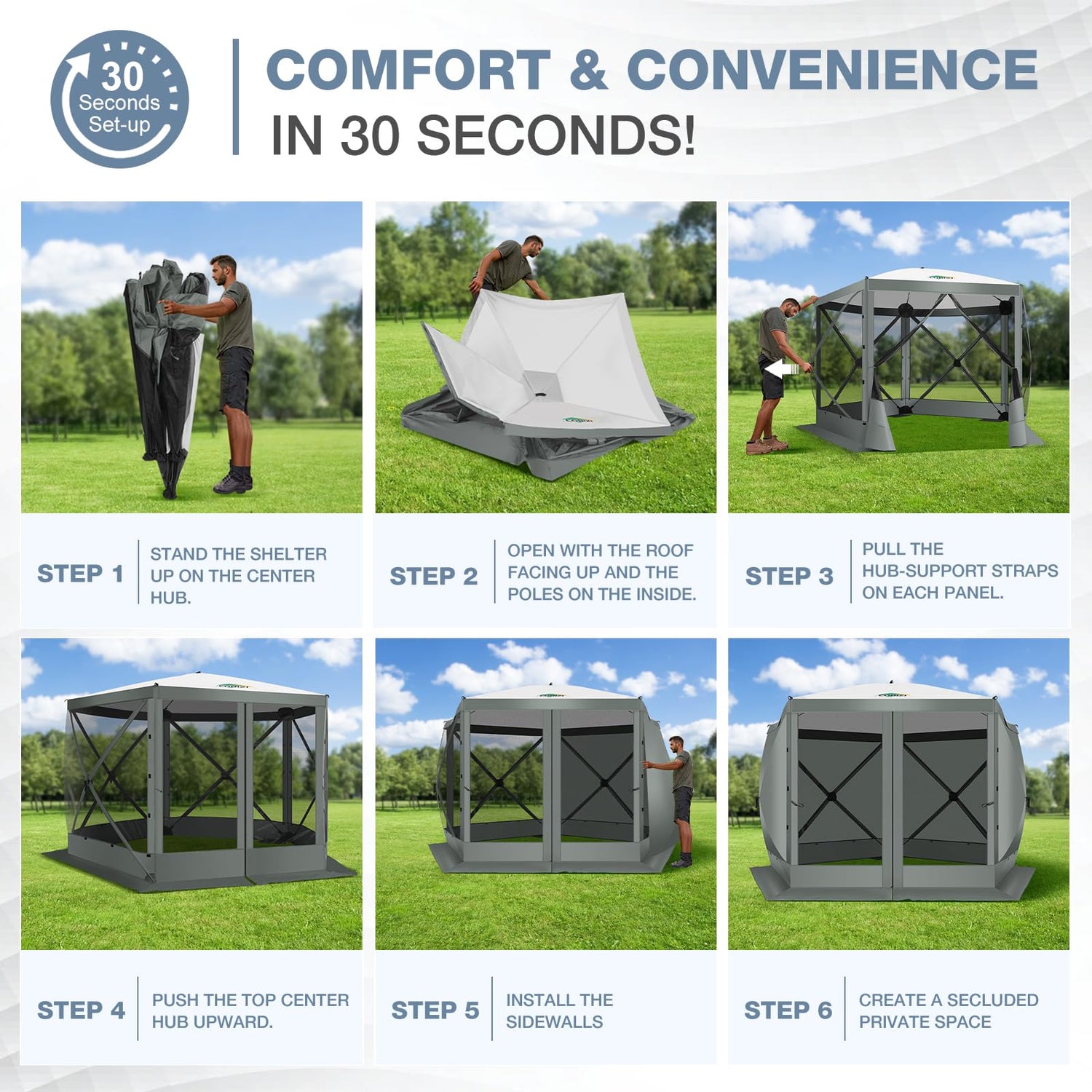 - 【5-year Warranty】The pop up gazebo comes with a 5-year warranty. The package contains necessary accessories, such as 11 ground nails, 5 wind ropes, 5 sidewalls, 2 door frame rods and instruction manual. Please note that door frame rods are available in gray and black and are installed differently, plus access to our customer service center for any questions or concerns.