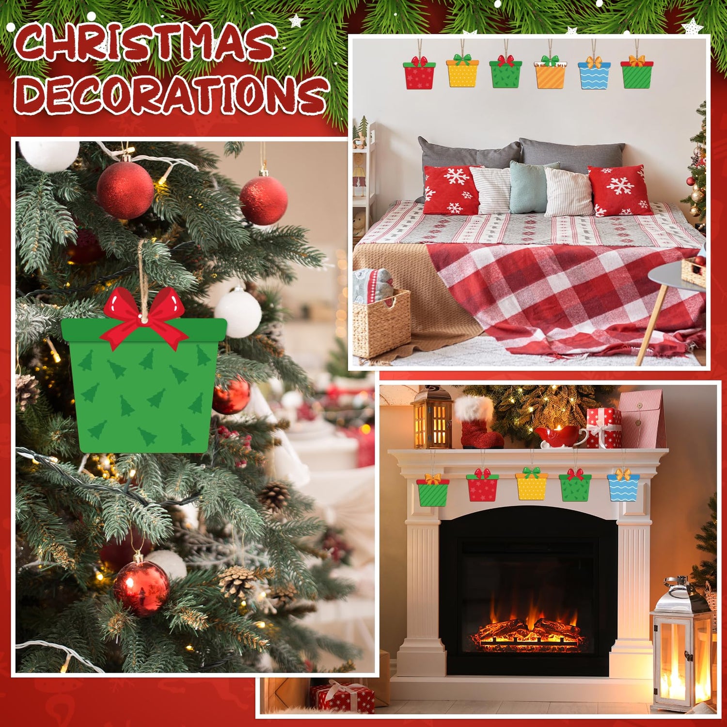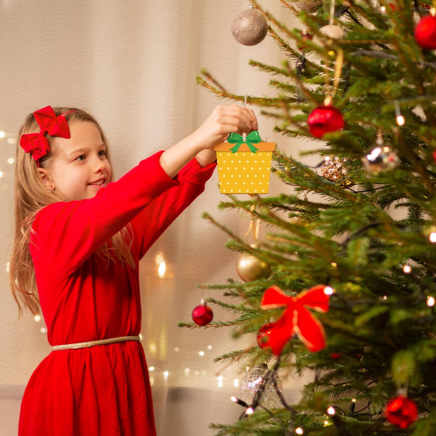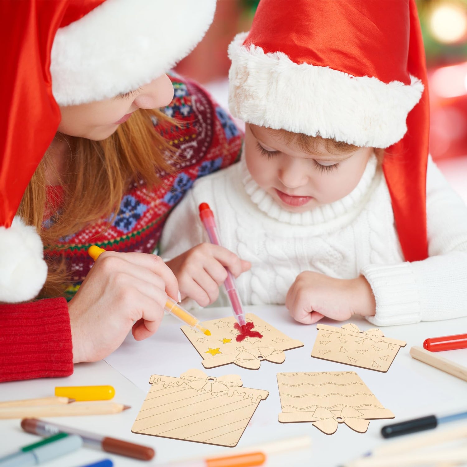 COCHIE Wooden Christmas Ornaments to Paint for Kids Adults Set of 24, Xmas Unfinished Wood Crafts for Painting, DIY Paintable Christmas Cutouts Slices for Craft with Ropes (Gift Boxes)