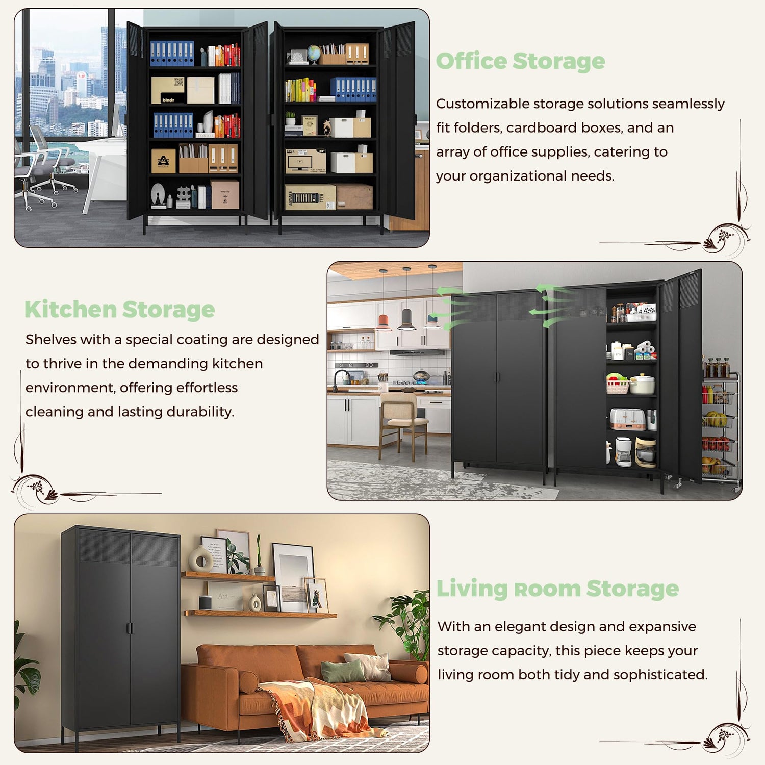 - Built to Last: Constructed with durable metal, this cabinet is a sturdy and long-lasting addition to your home, ensuring it remains a reliable storage solution.